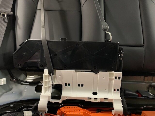 - Raise the high voltage controller vertically, and then restrain the controller with a bungee strap looped around the rear RH seat headrest.