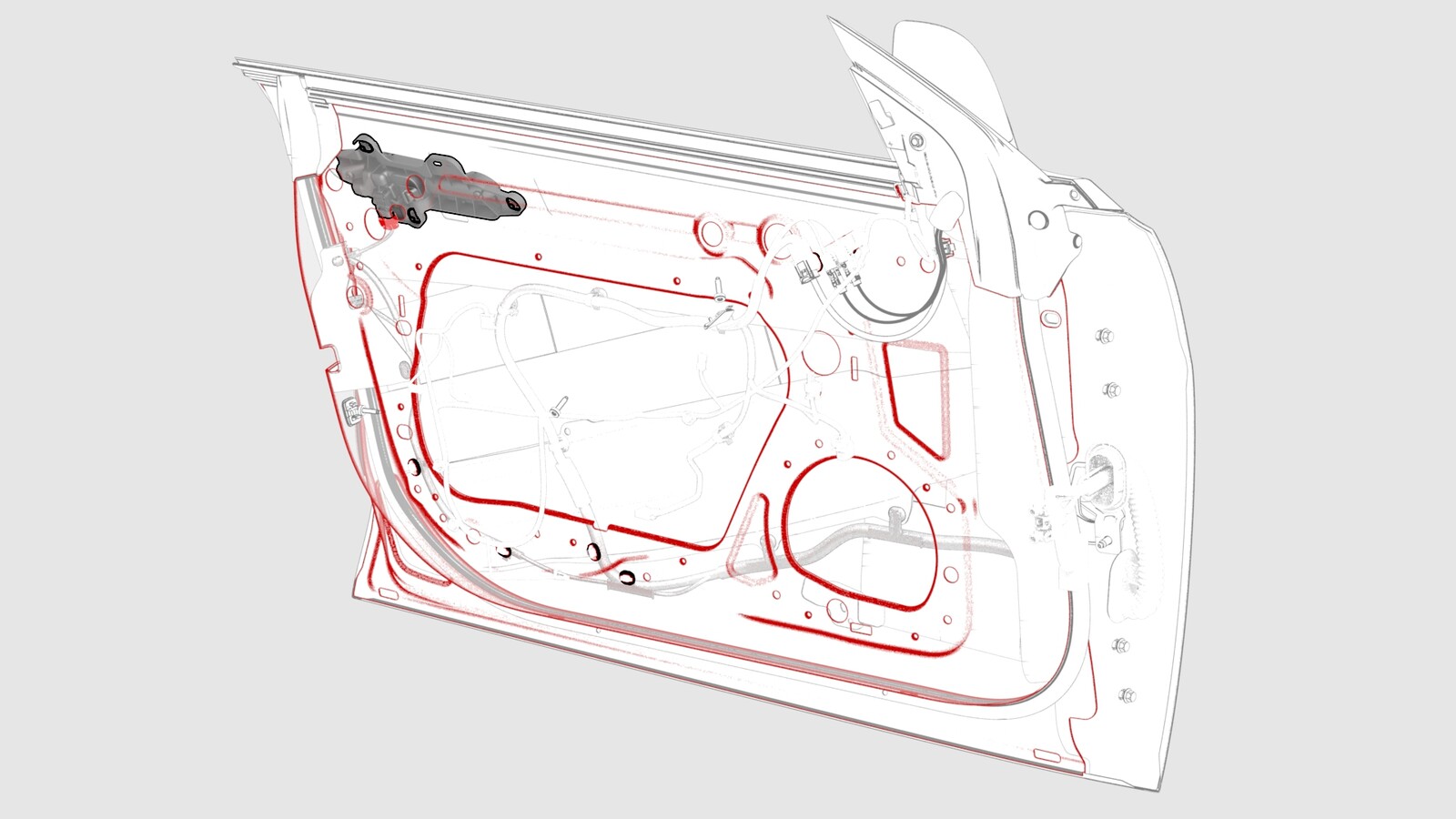 - Connect the wiring harness to the LH front door exterior release handle connector.