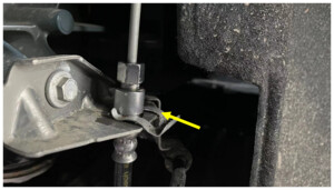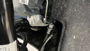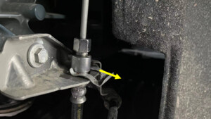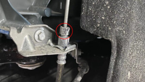 - Position the oil drain under LH rear brake hose area