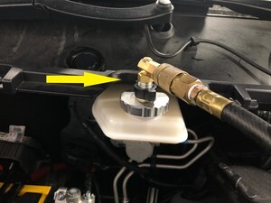 - Install pressure bleeder adapter onto reservoir