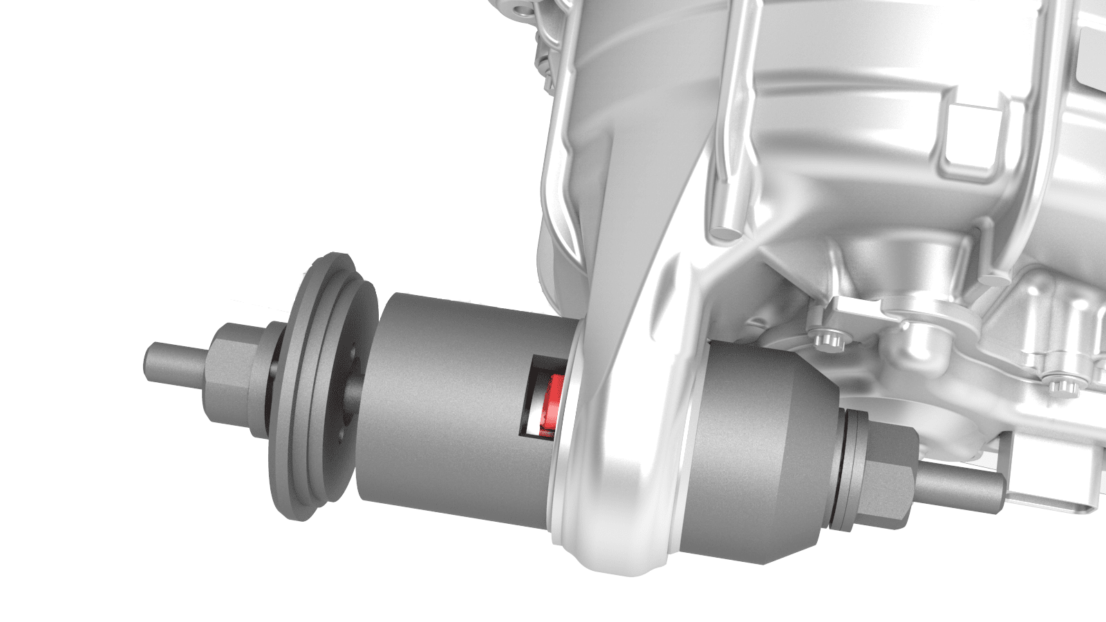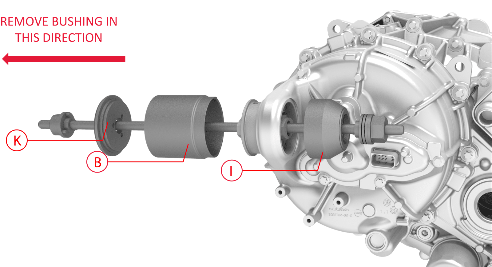 - When the bushing has been pushed out of the front drive unit, separate the bushing tool, and then remove the bushing.