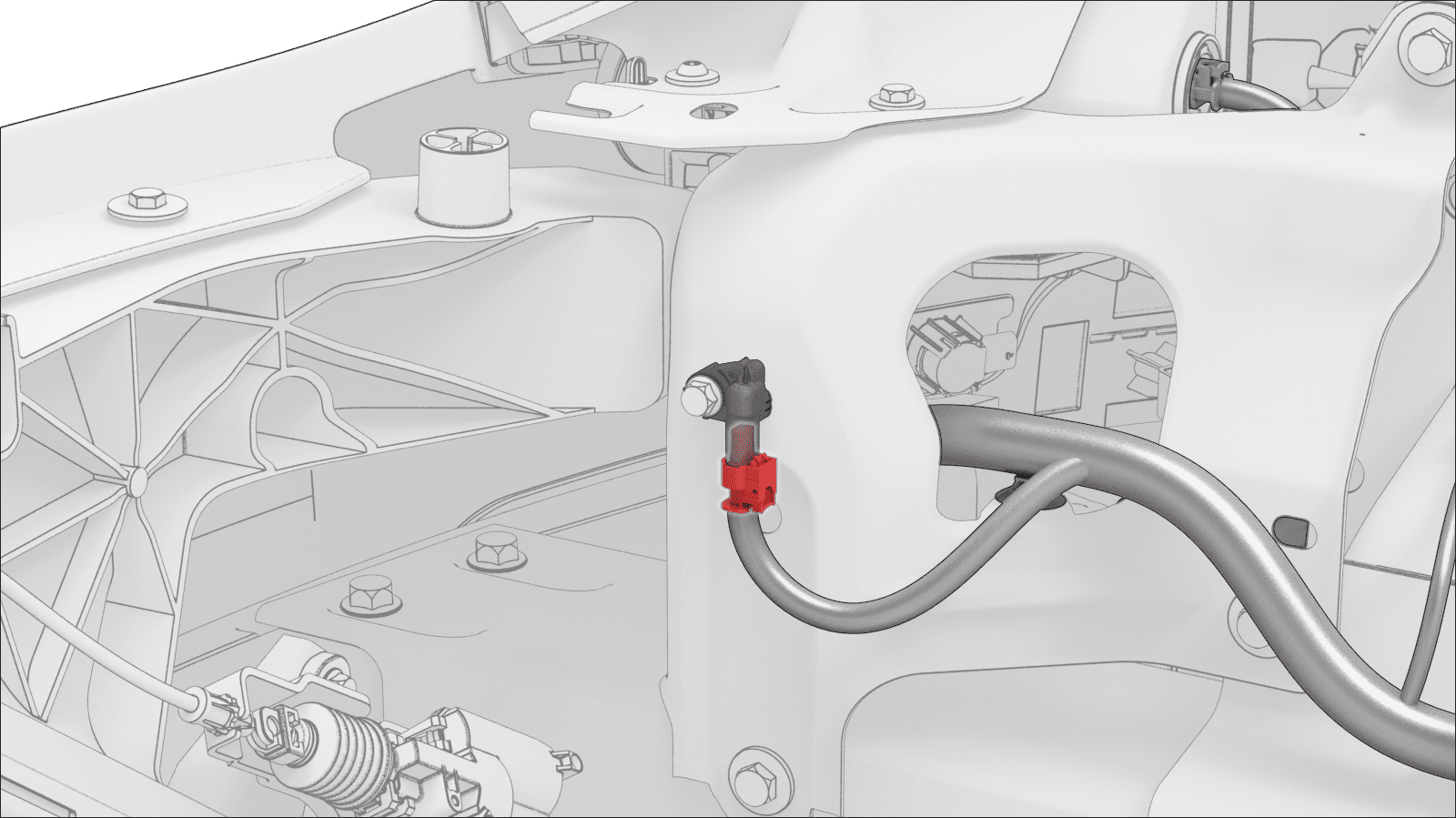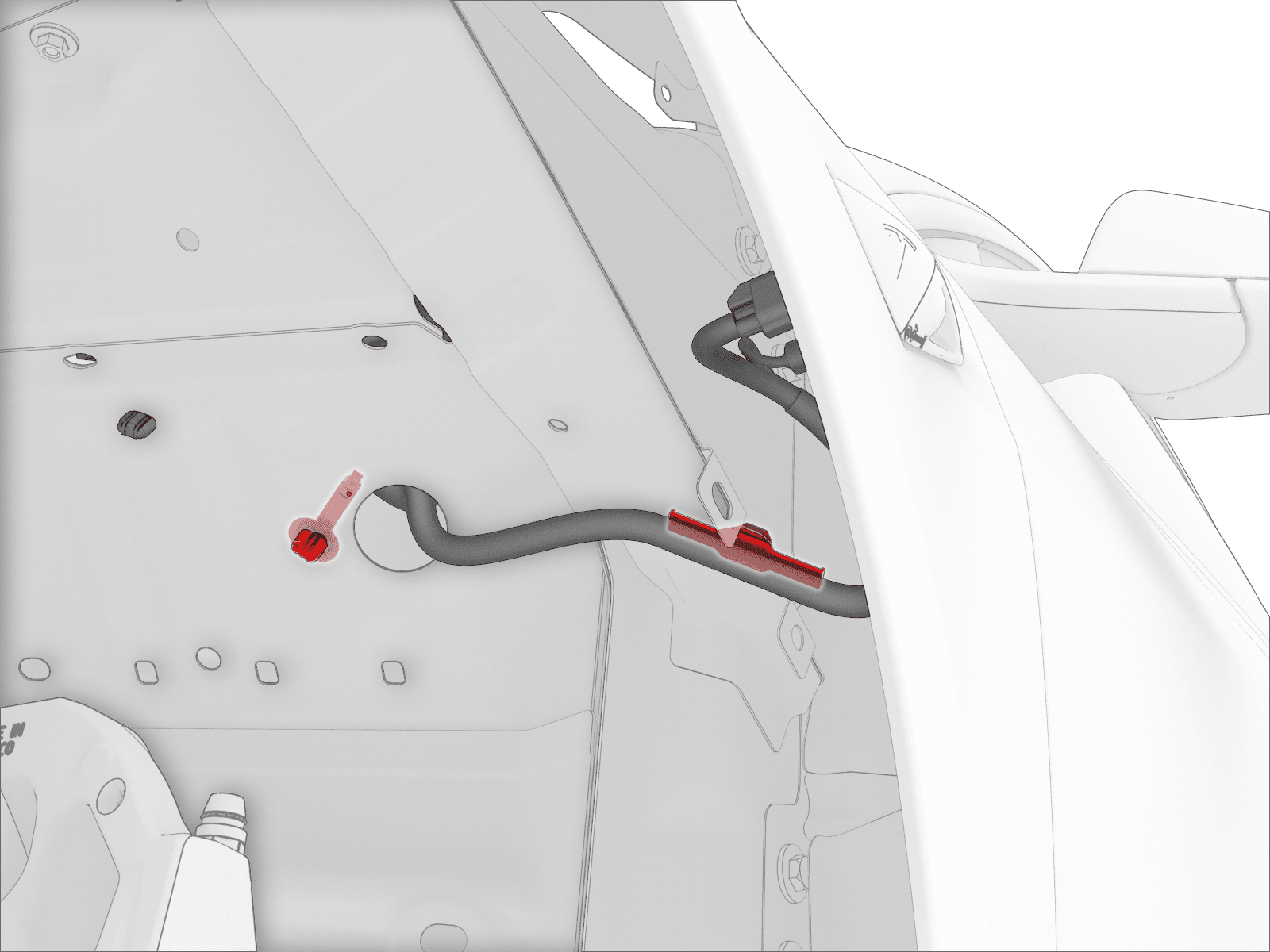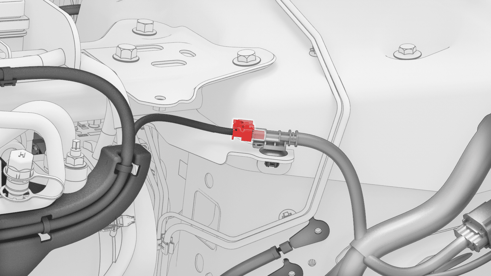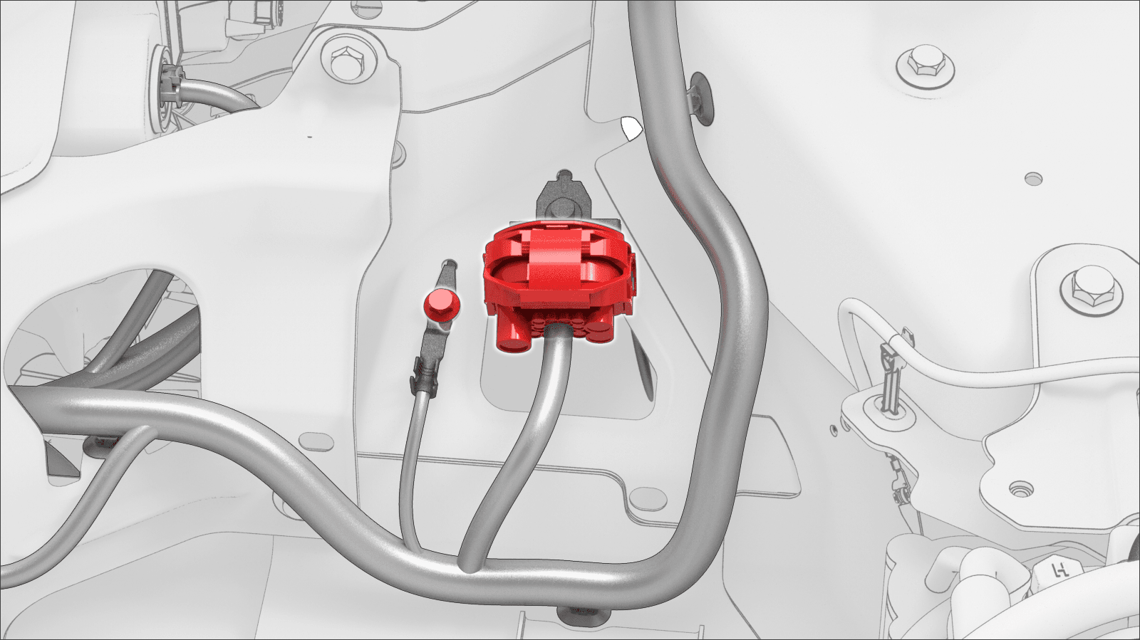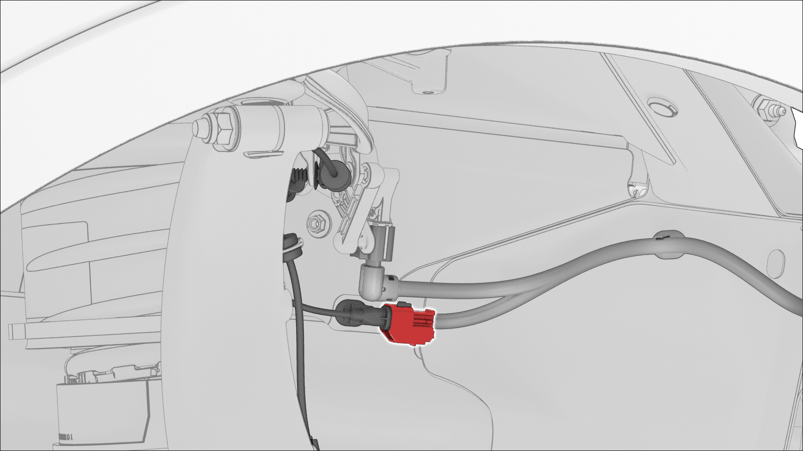 - Disconnect the HVIL connector near the LH shock tower.