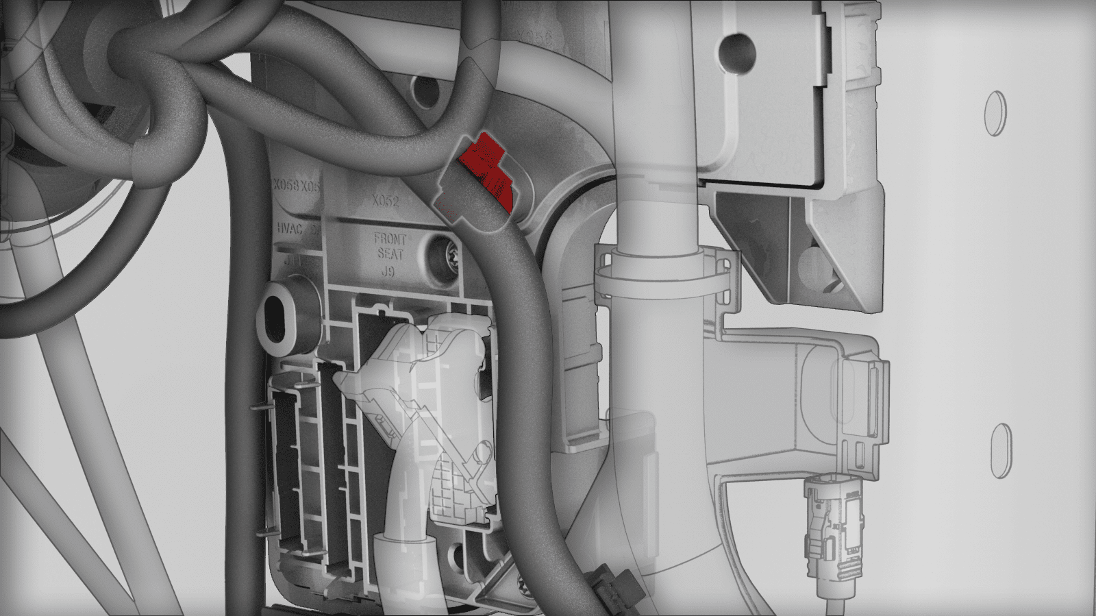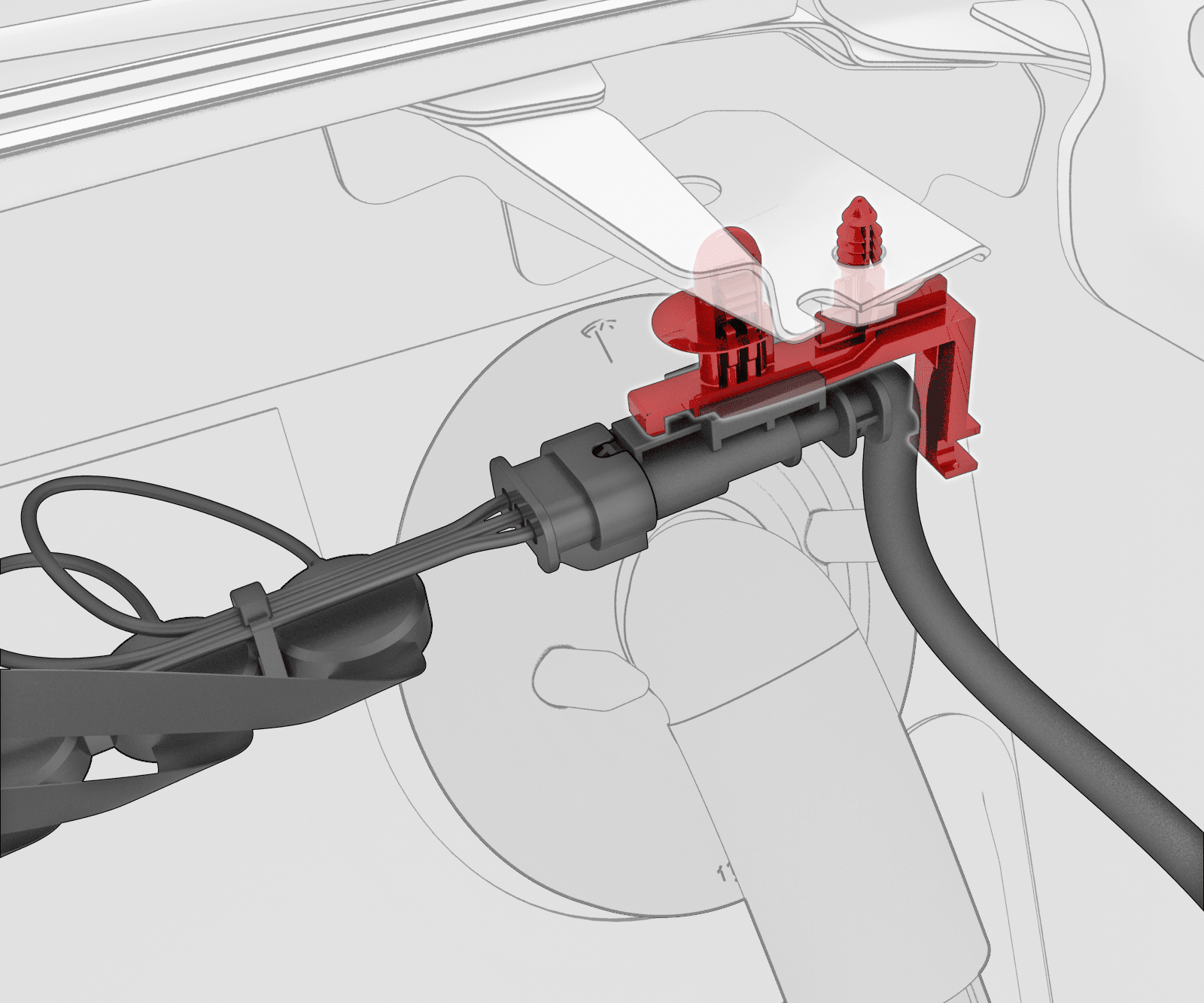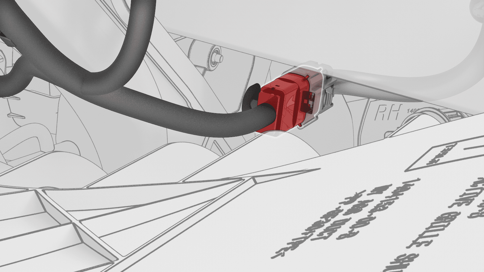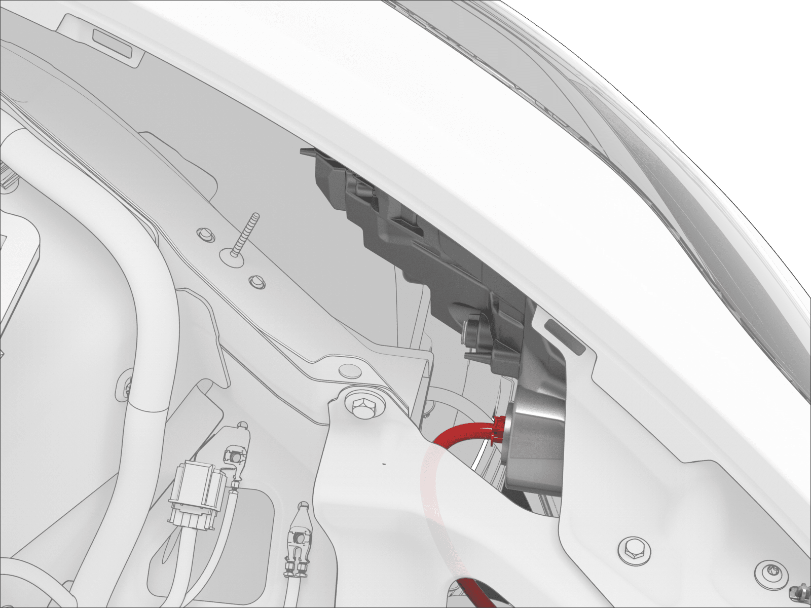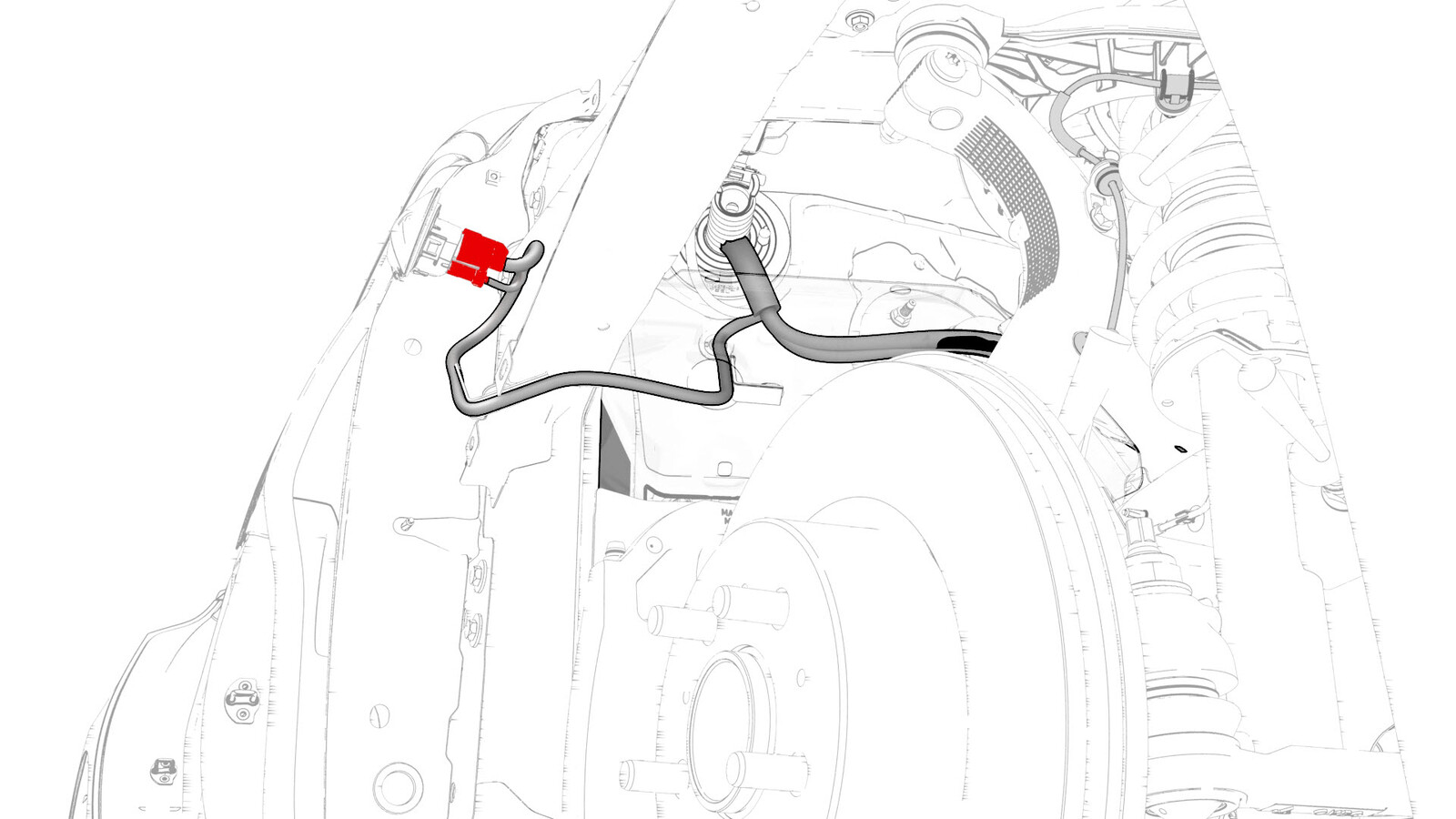 - Disconnect the HVIL connector near the LH shock tower.