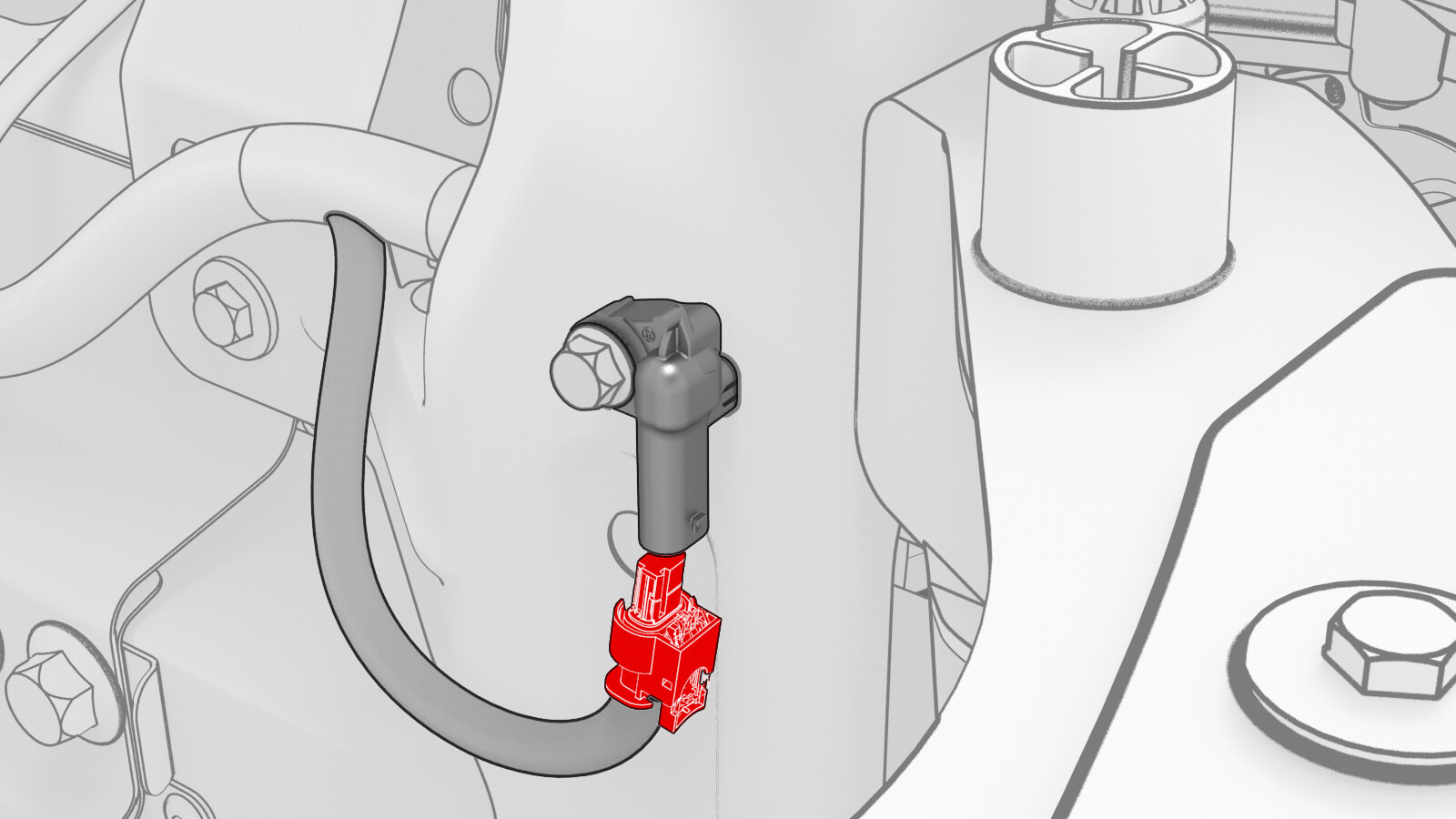- Disconnect the electrical connector from the LH shotgun accelerometer sensor.