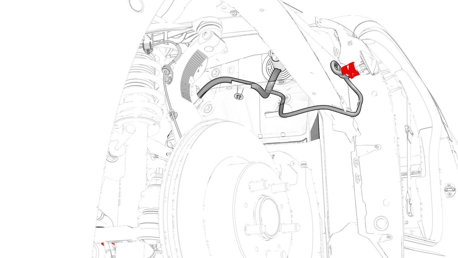 - Disconnect the RH front wheel speed sensor connector, and then remove the clips that attaches the front wheel speed sensor harness to the vehicle.