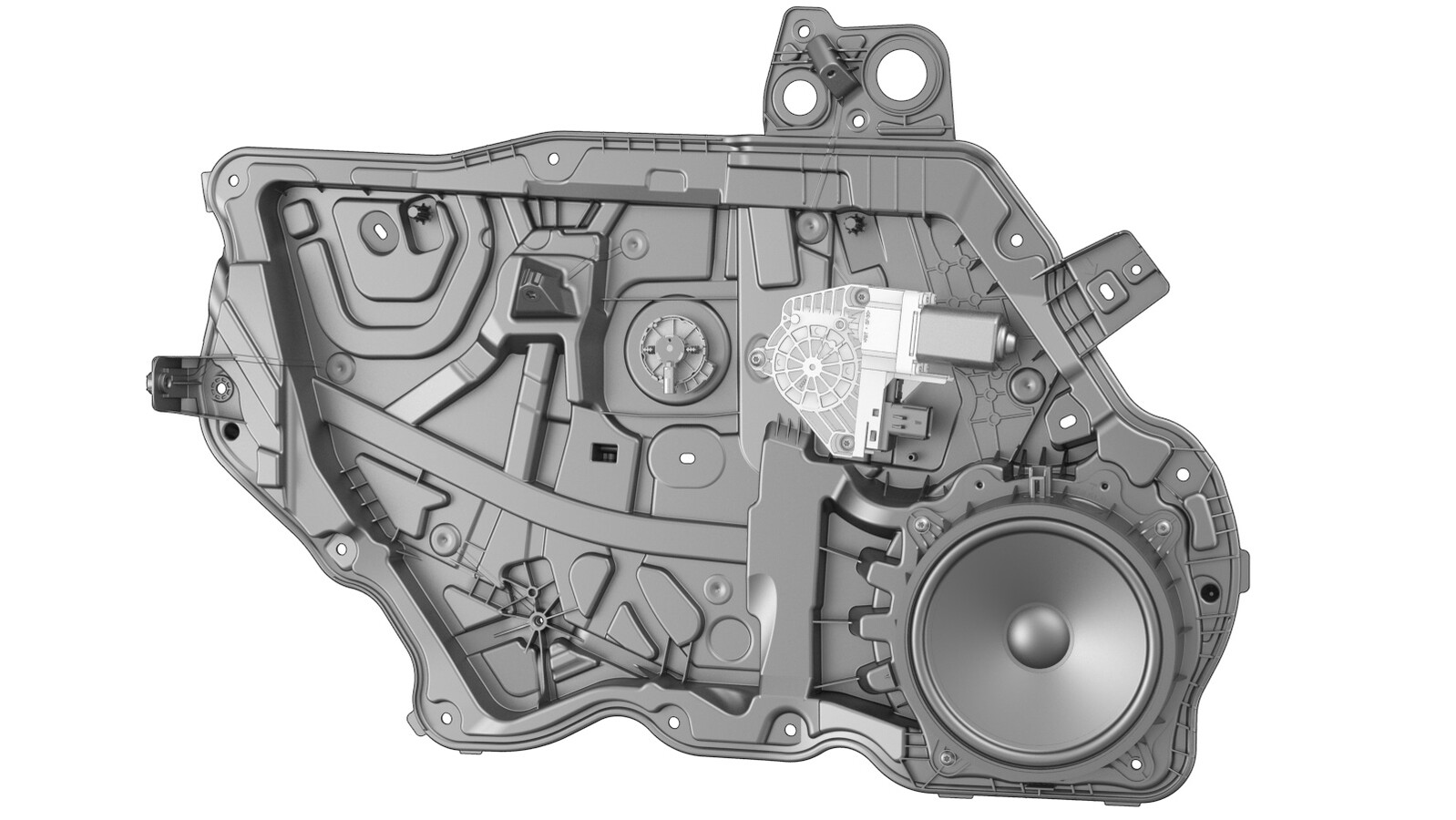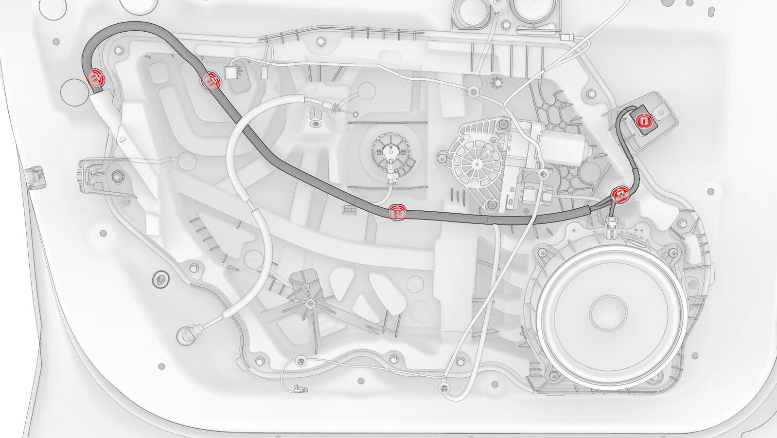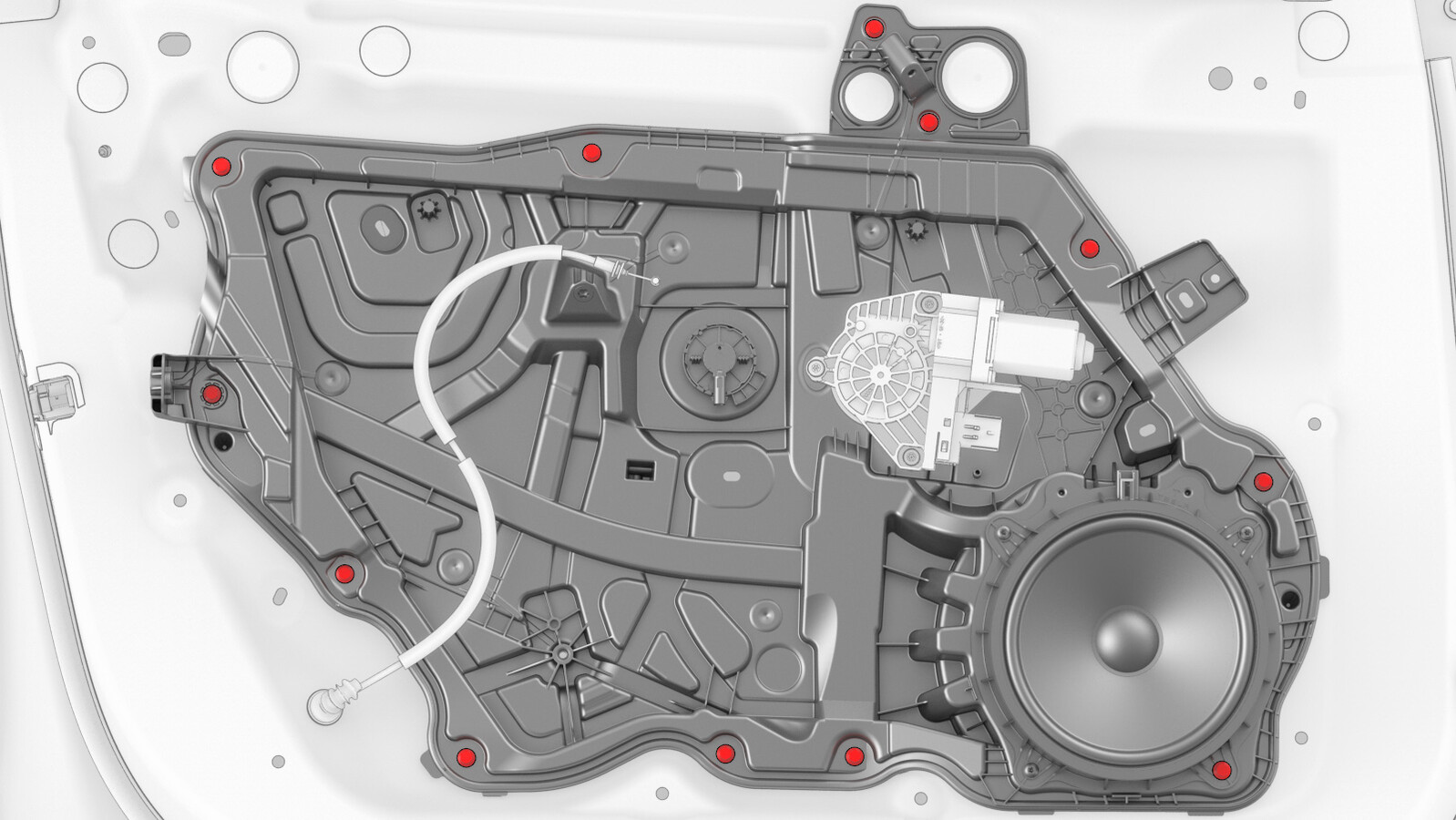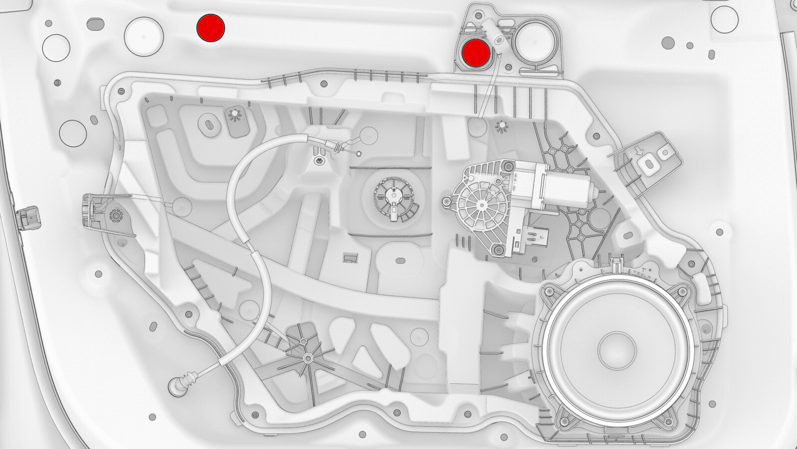 - Remove the plugs that cover the regulator rail fasteners.