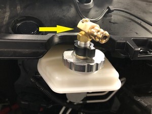 - Clean area around brake fluid reservoir and remove brake reservoir cap