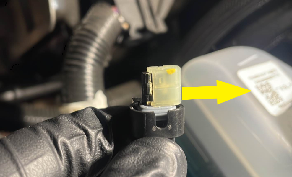 NoteHarness with purple tape connects to coolant temperature sensor closest to coolant bottle.