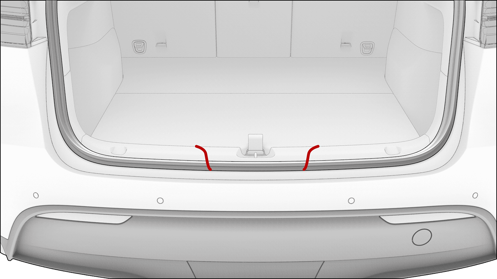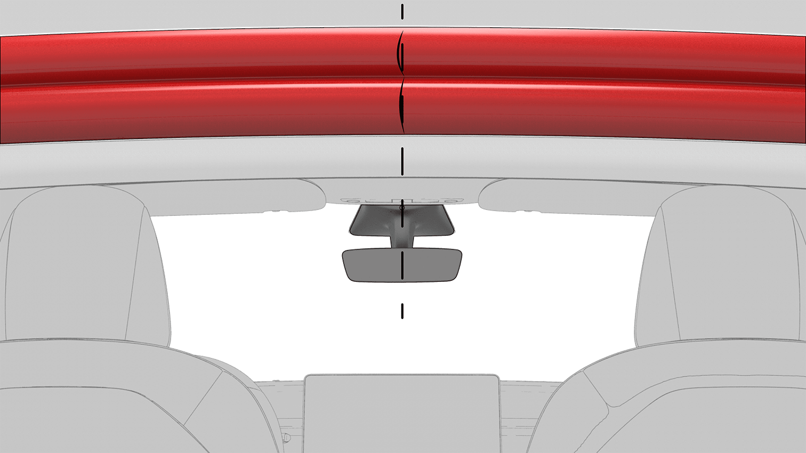 - Align the line on the trunk seal to the rear view mirror.
