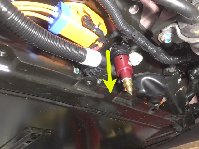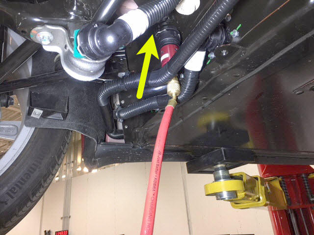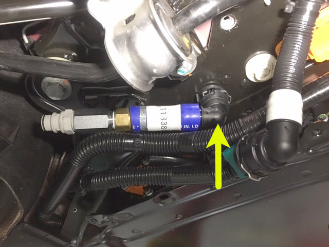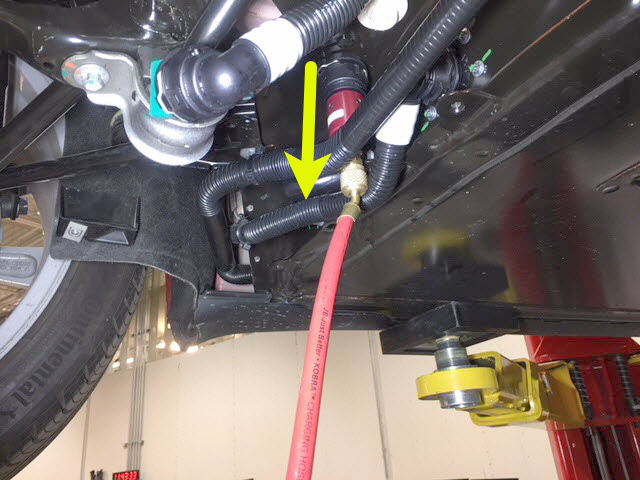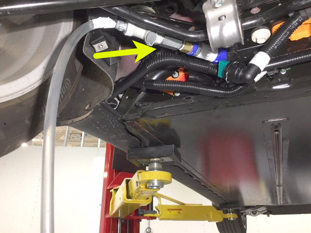 7. Connect the coolant pressure test adapter to the male fitting on the RH underside of the ancillary bay.