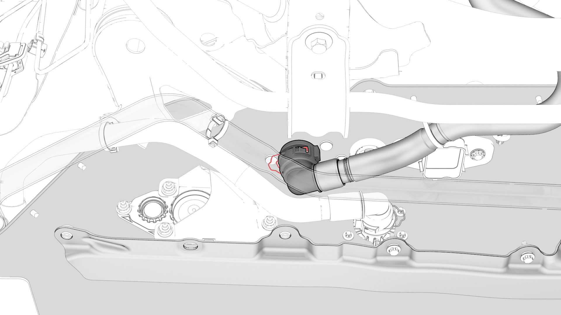 50. Loosen and disconnect the outlet air hose from the coolant pressure adapter.