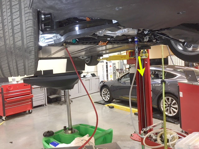 5. Position a coolant drain under the rear RH side of the HV battery.