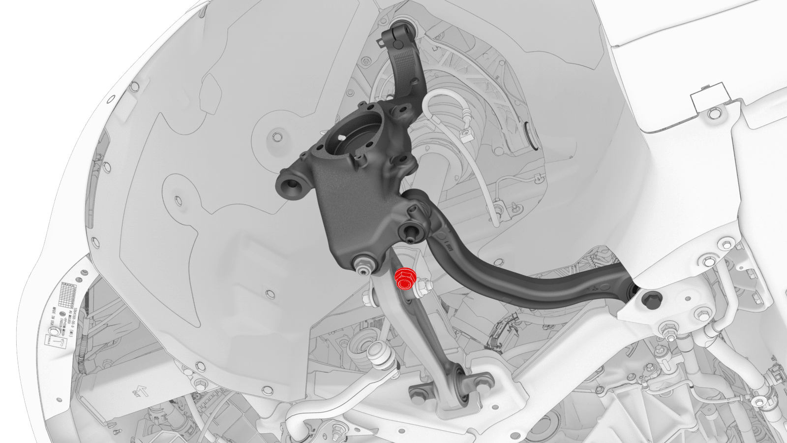 | Nut that attaches the LH front lower compliance link to the front suspension knuckle |