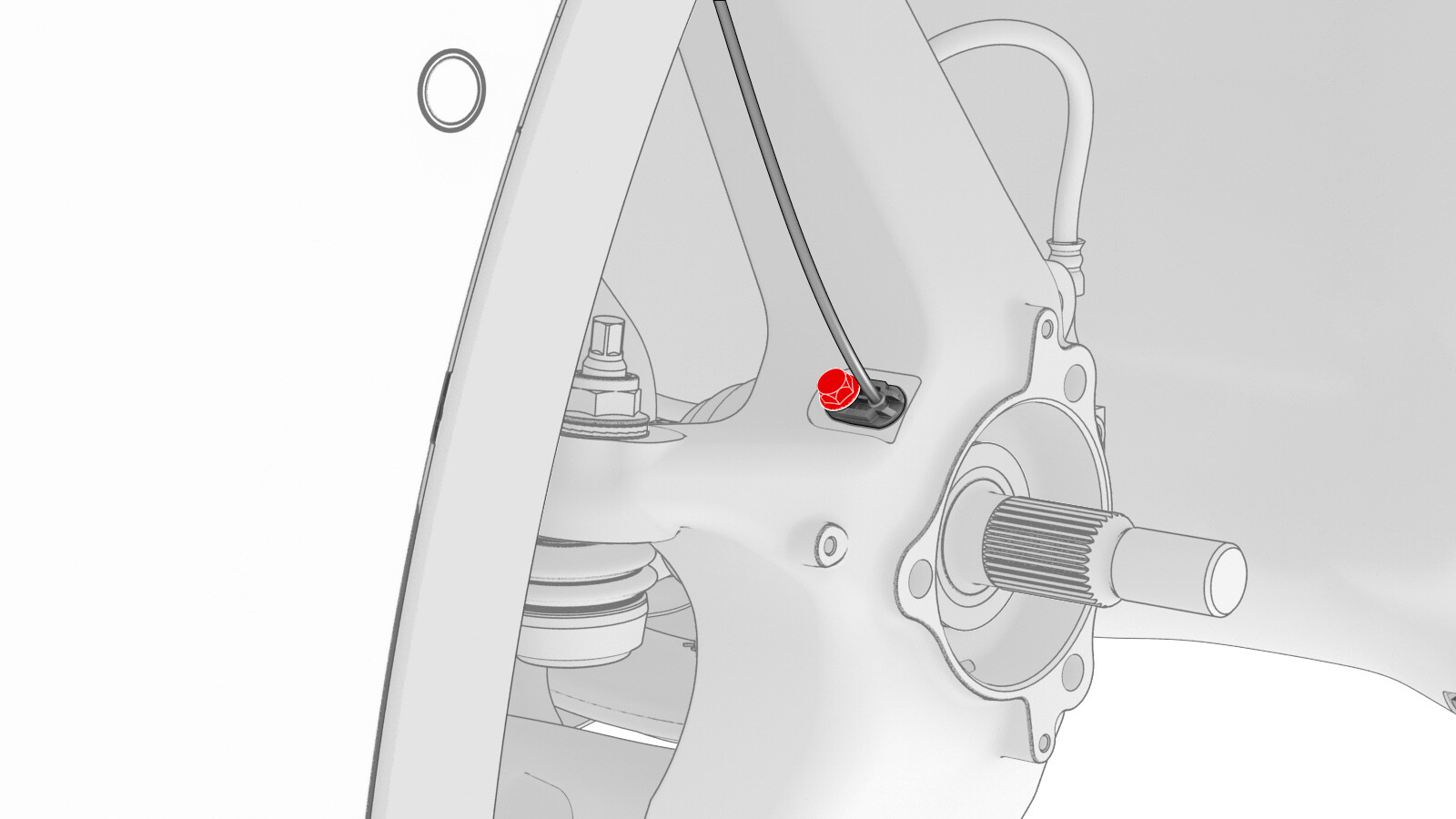 | Bolt that attaches the LH front ABS wheel speed sensor to the LH front suspension knuckle |