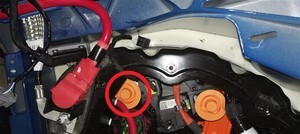 - Measure the voltage across the pyrotechnic battery disconnect mount points, and then install the pyrotechnic battery disconnect. See Pyrotechnic Battery Disconnect (Remove and Replace).