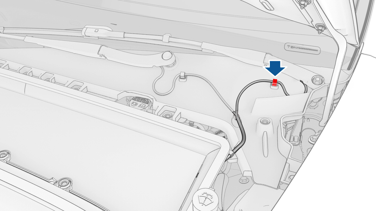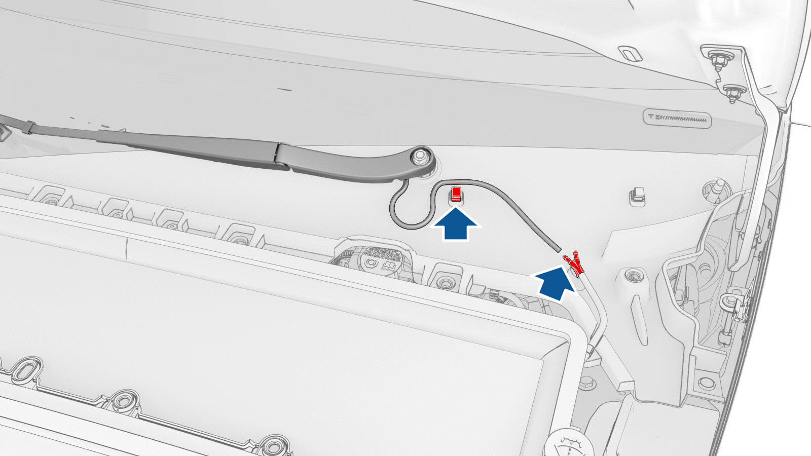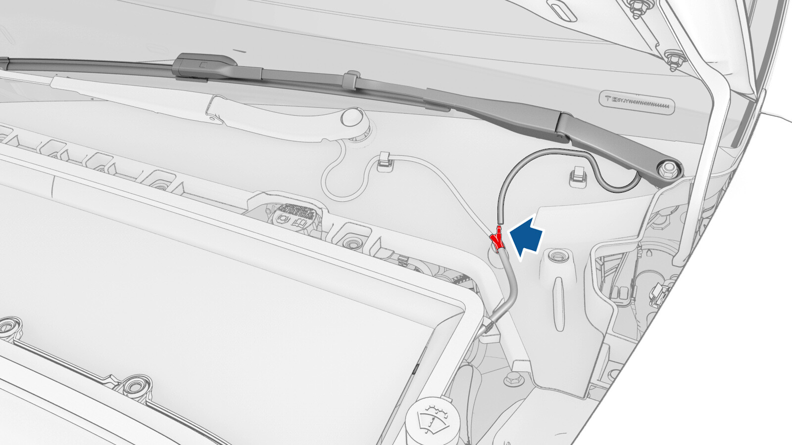 - Release the clip that attaches the LH wiper arm hose to the vehicle.