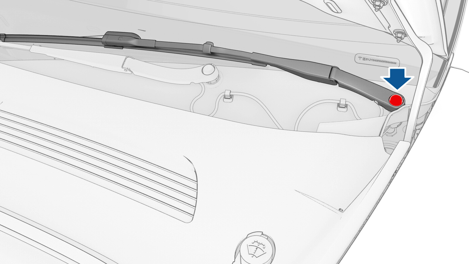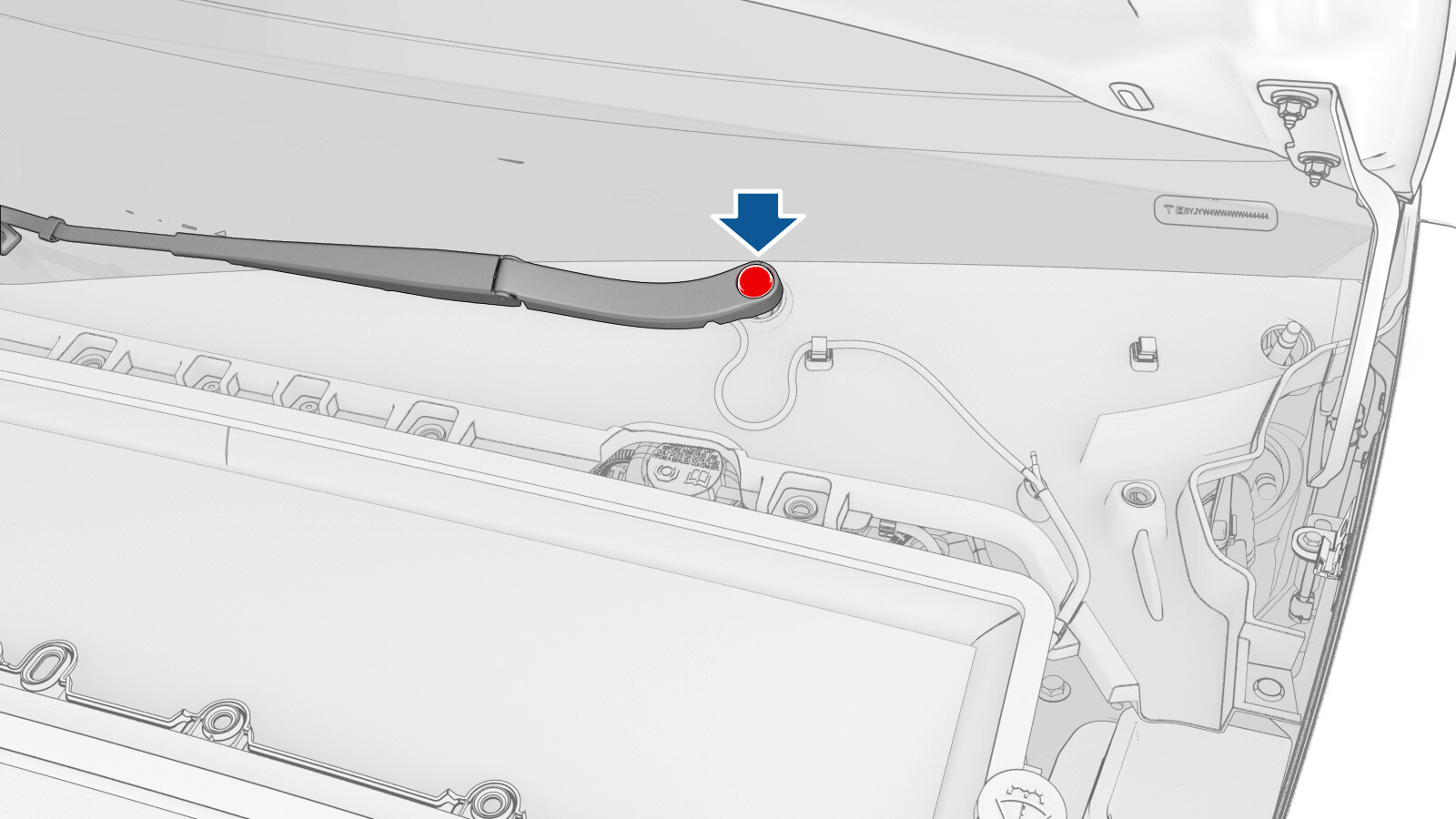 NoteEnsure the RH wiper tip is aligned between the two indicators at the corner of the windshield.
