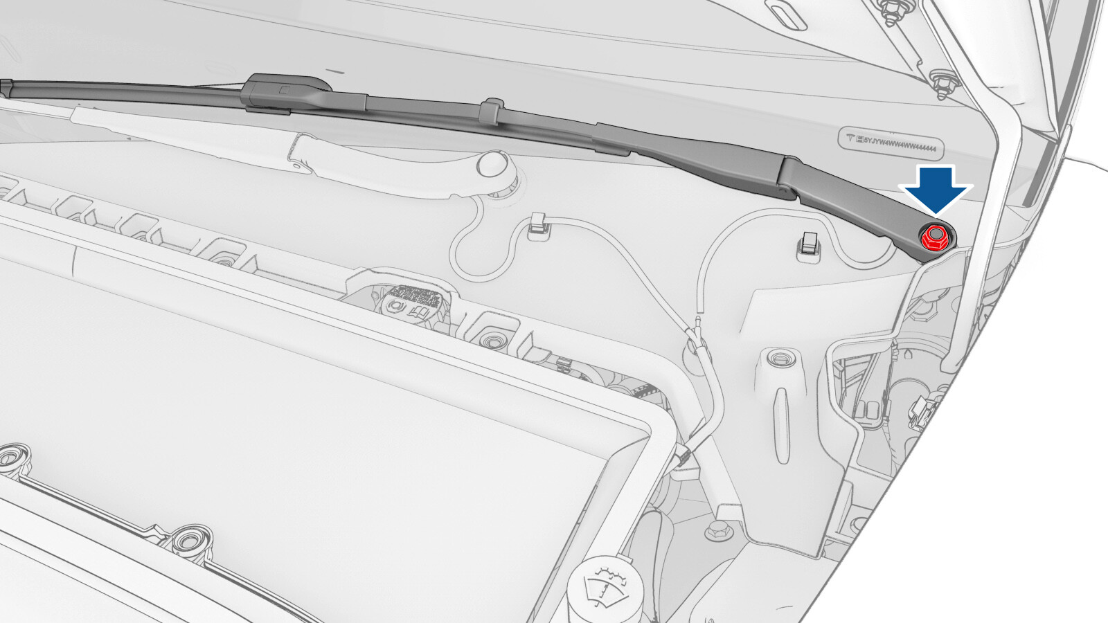 - Repeat step 2 through step 7 for the RH wiper arm and hose assembly.