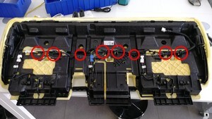 - Release the clips (x2) that attach the 2nd row seat cushion heat pad harness to the vehicle, and then release the harness from the hooks to remove it from the vehicle.