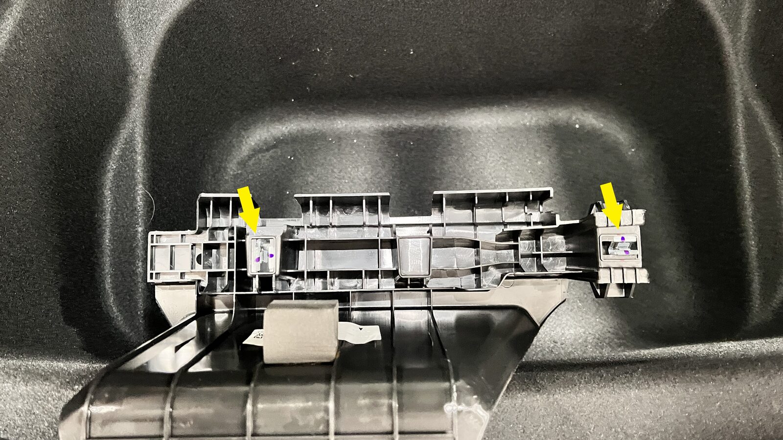 - Move the trunk tub liner into the original position, and then install the push clip that attaches the liner to the rucket bracket.