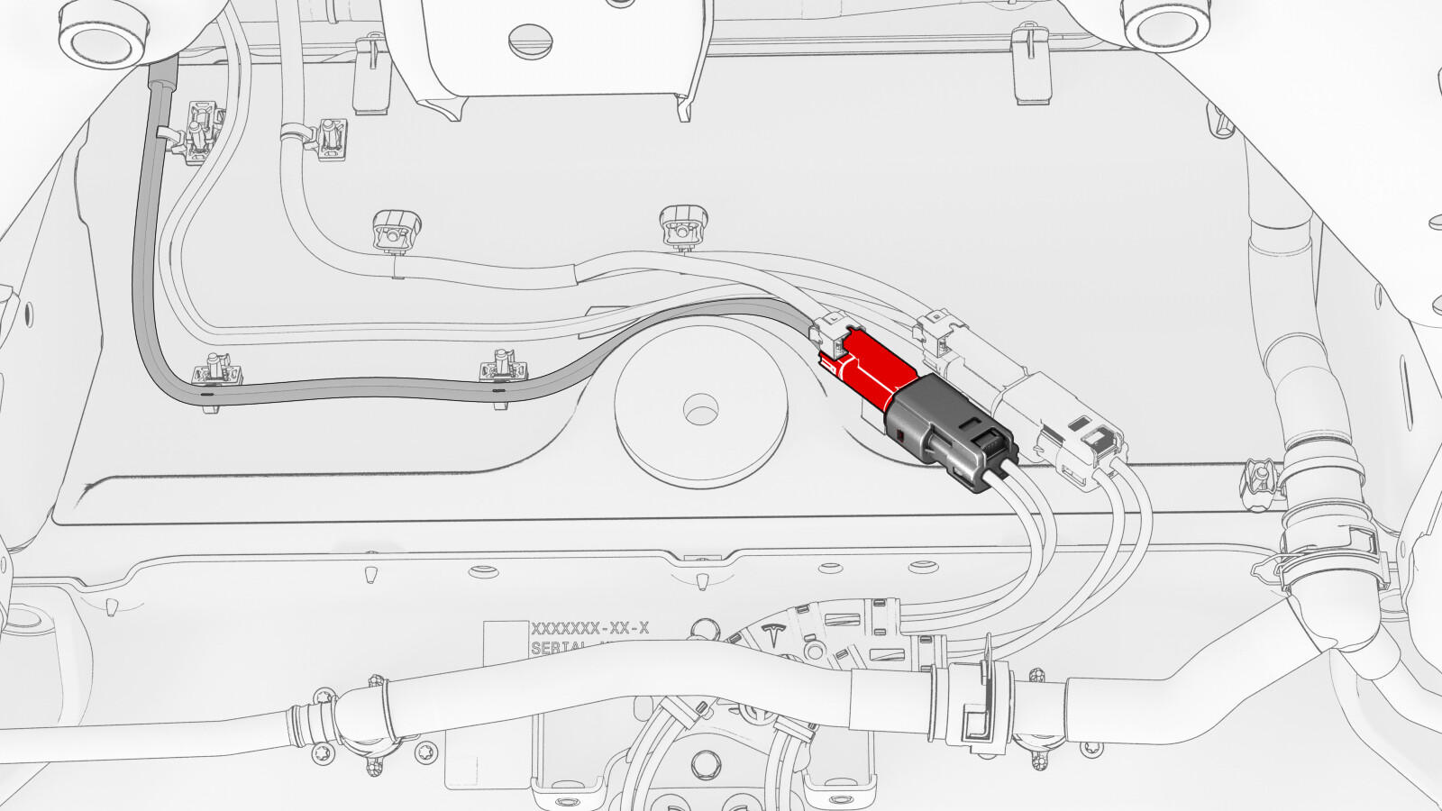 - Connect the compressor HV electrical connector to the HV electrical harness.