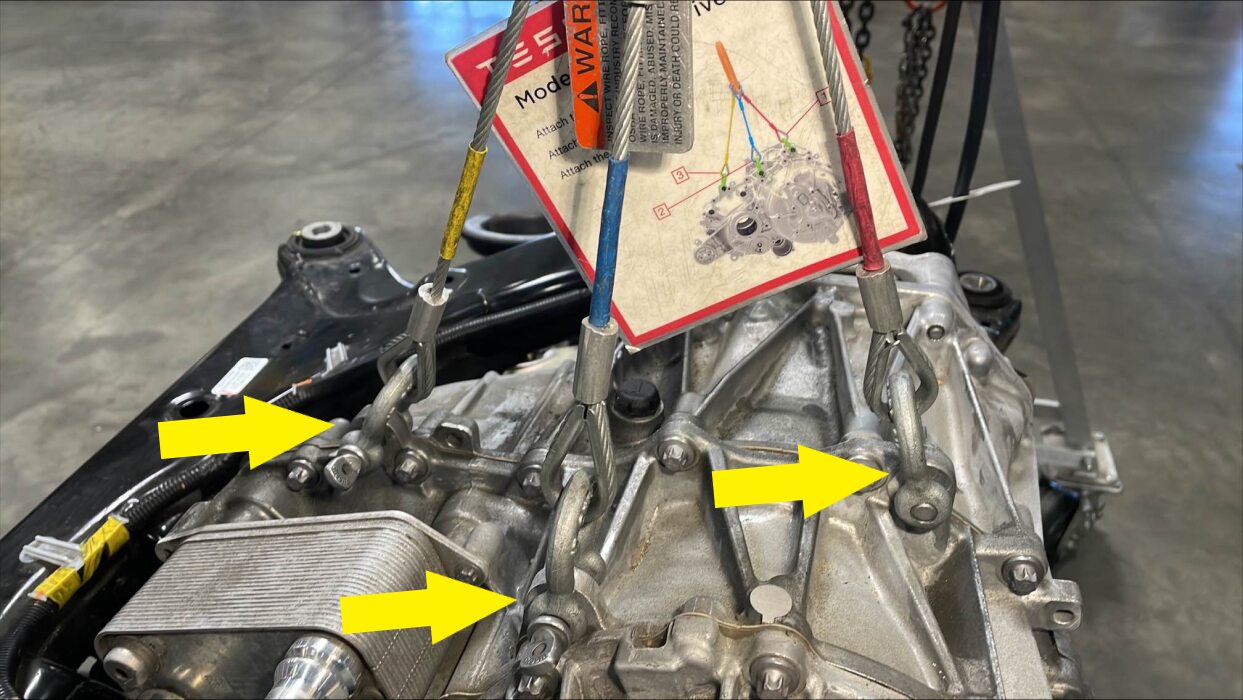 - With the help of an assistant, fully secure the straps (x3) that attach the rear subframe to the subframe lifting tool.