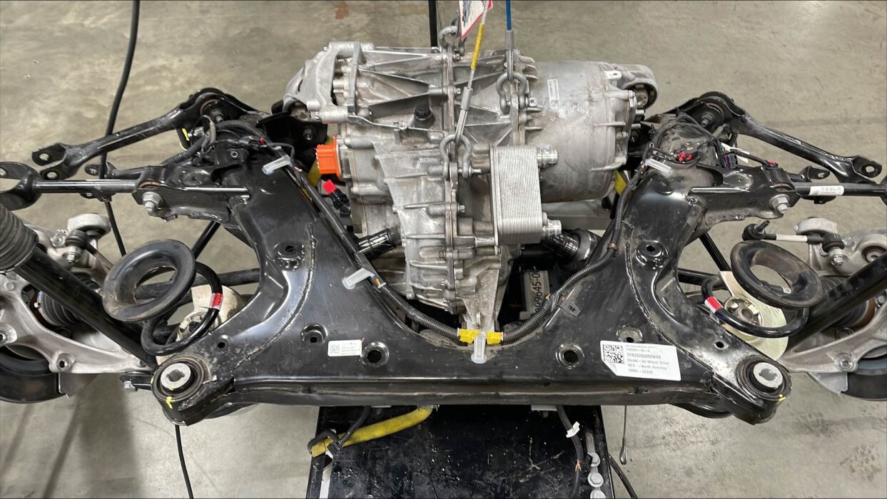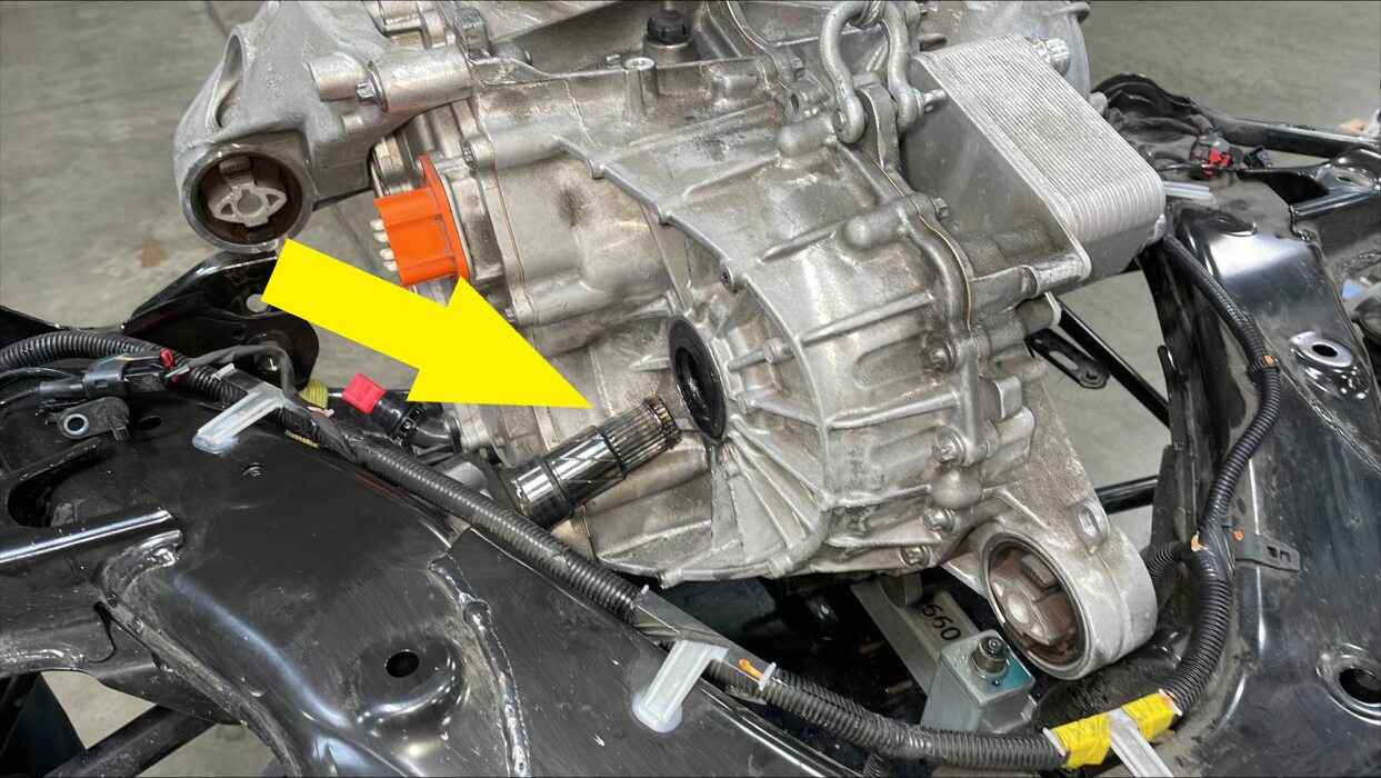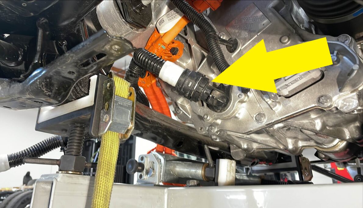 - Release the clip that attaches the rear subframe electrical harness to the rear drive unit inverter.
