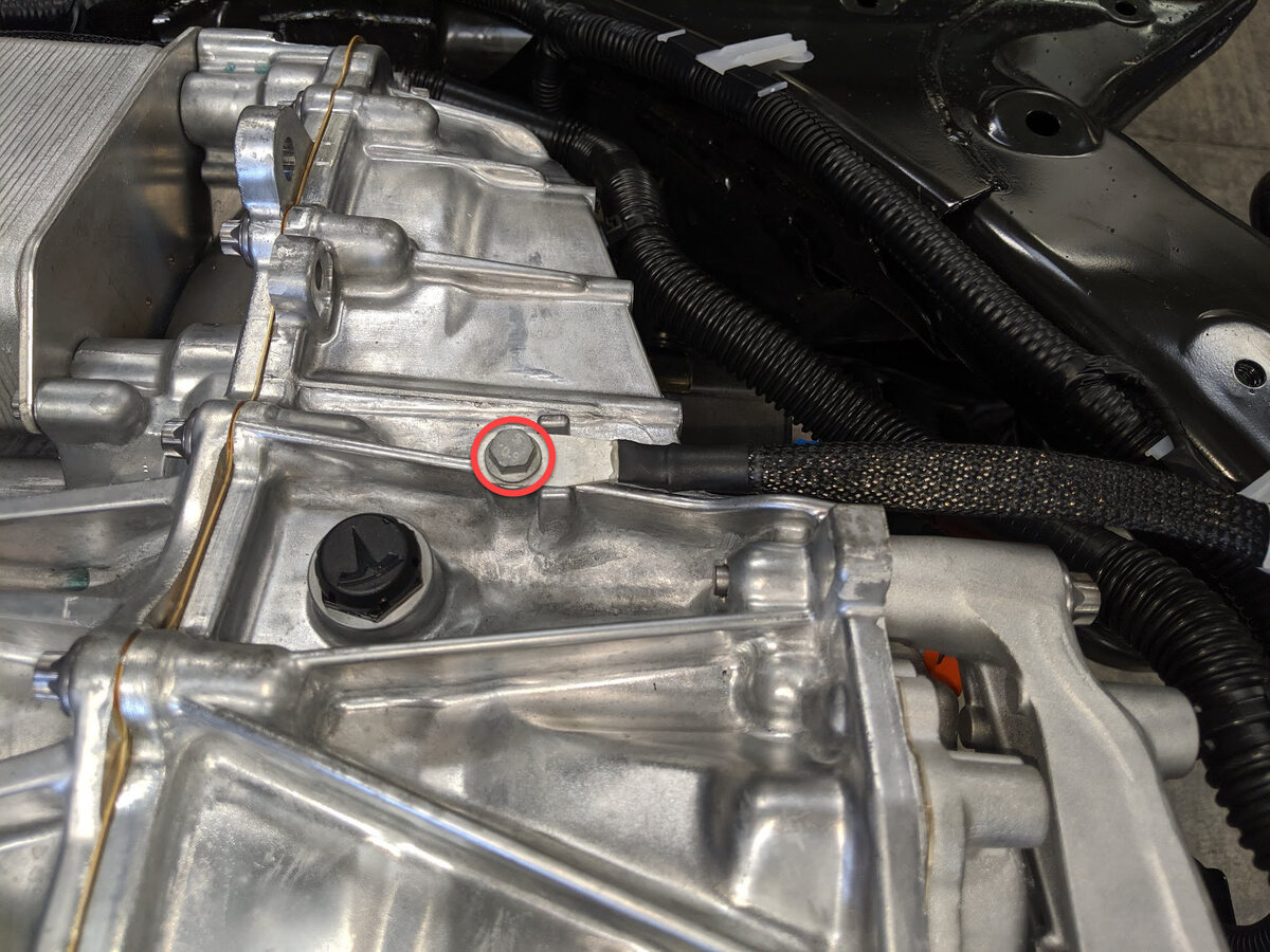 - Remove the bolt that attaches the rear drive unit HV harness bracket to the rear drive unit inverter.