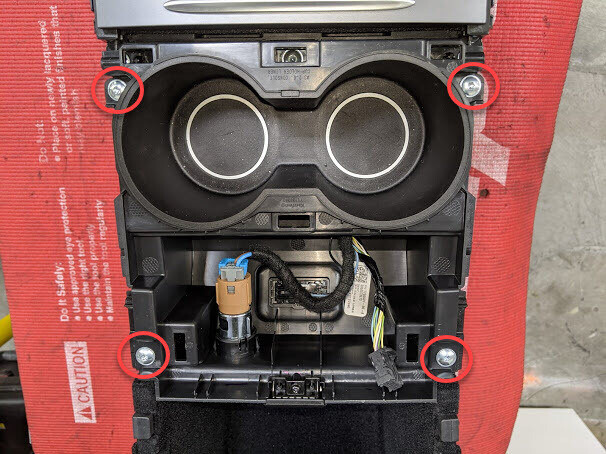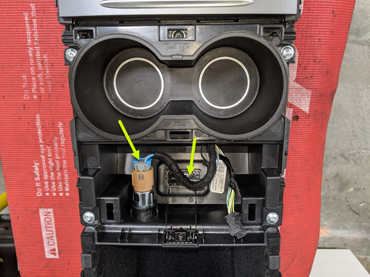 - Disconnect the cup holder electrical connectors (x2).