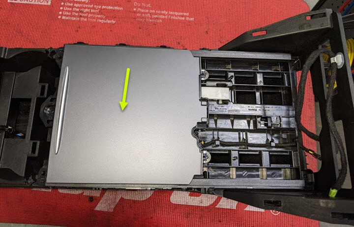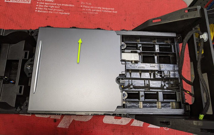 - Lift straight up to remove the sliding lid from the center console.