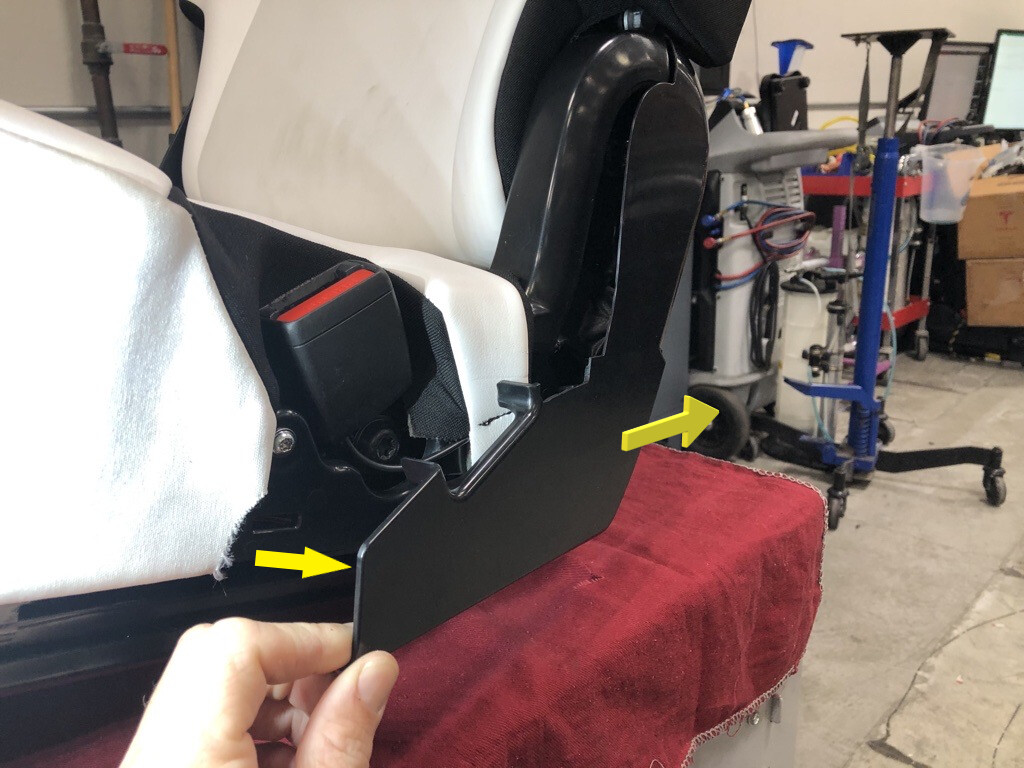 - Release the clips (x4) that attach the RH 2nd row seat outer B-cover from the inner B-cover, and slide the cover towards the rear of the seat to remove it from the assembly.