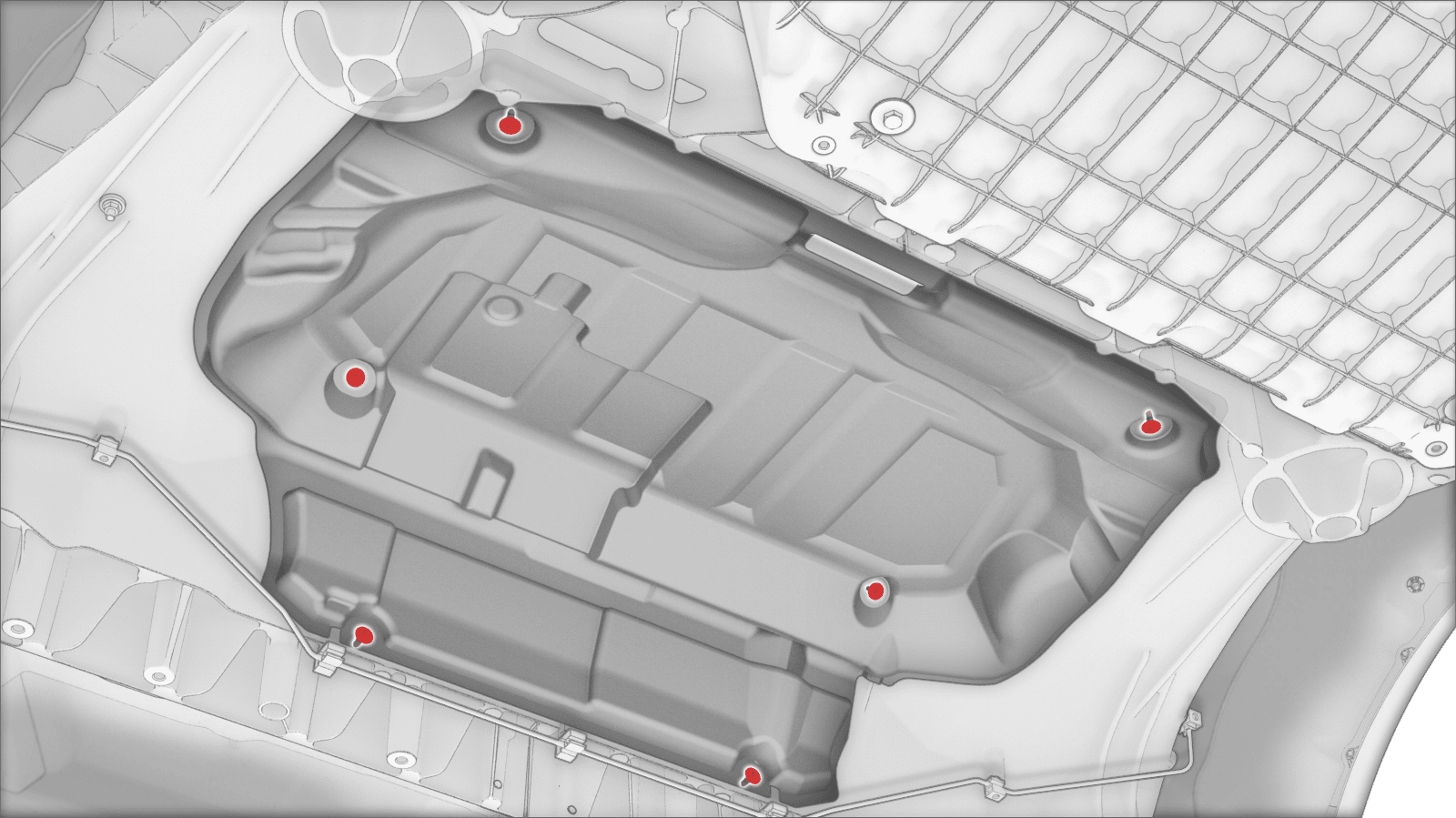 - Remove the clips (x6) that attach the rear motor bay noise absorber to the body, and then remove the noise absorber from the vehicle.