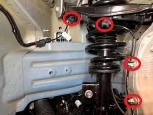 With assistance, install the bolt and new nut that attach the LH front upper control