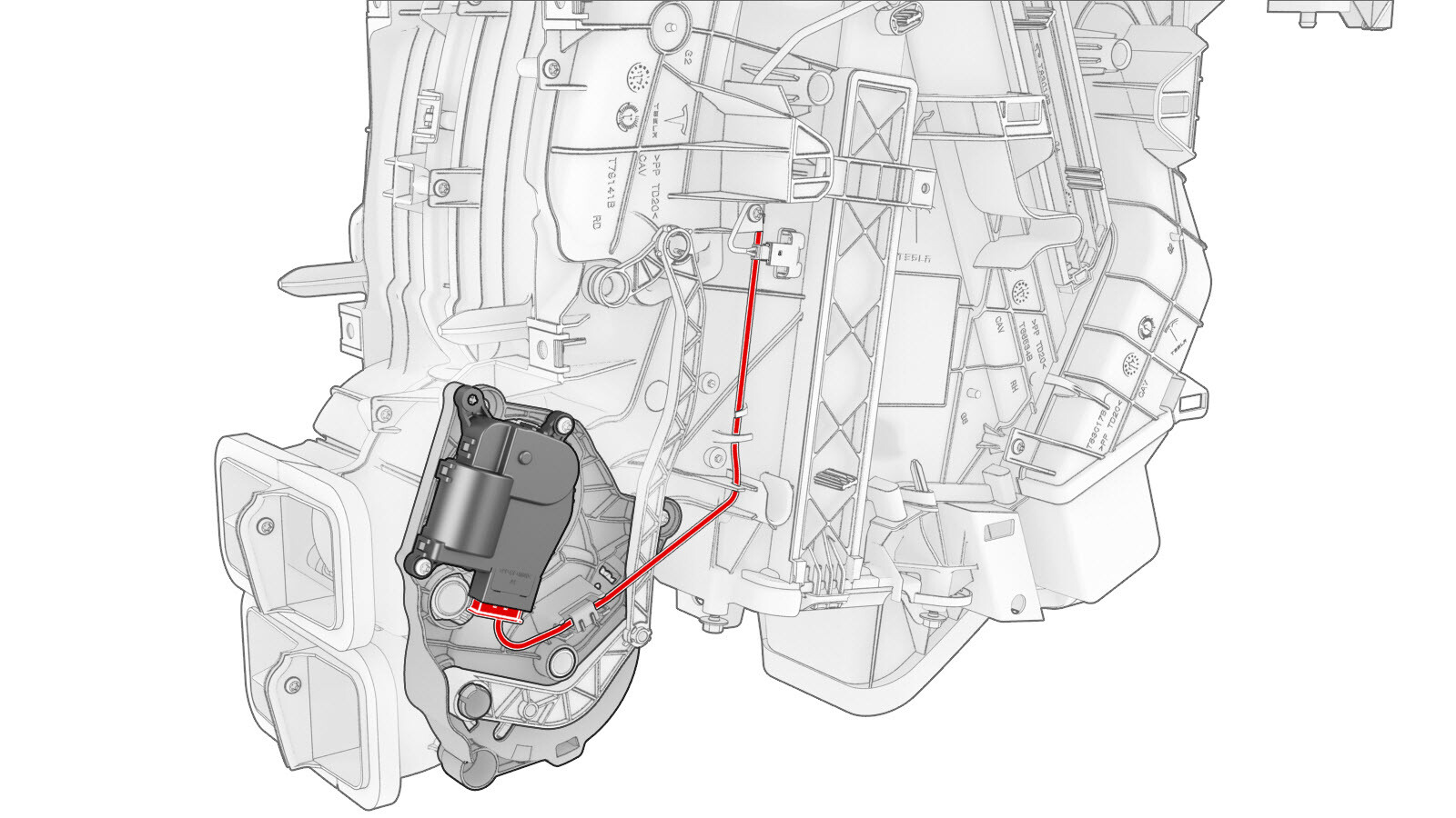- Disconnect the lower mode actuator electrical connector, and then remove the actuator from the HVAC assembly.