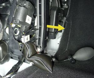 - Insert the inflatable air bag up to the bottom of the lower mode actuator, then inflate it between the RH cross car beam bracket and lower HVAC assembly.