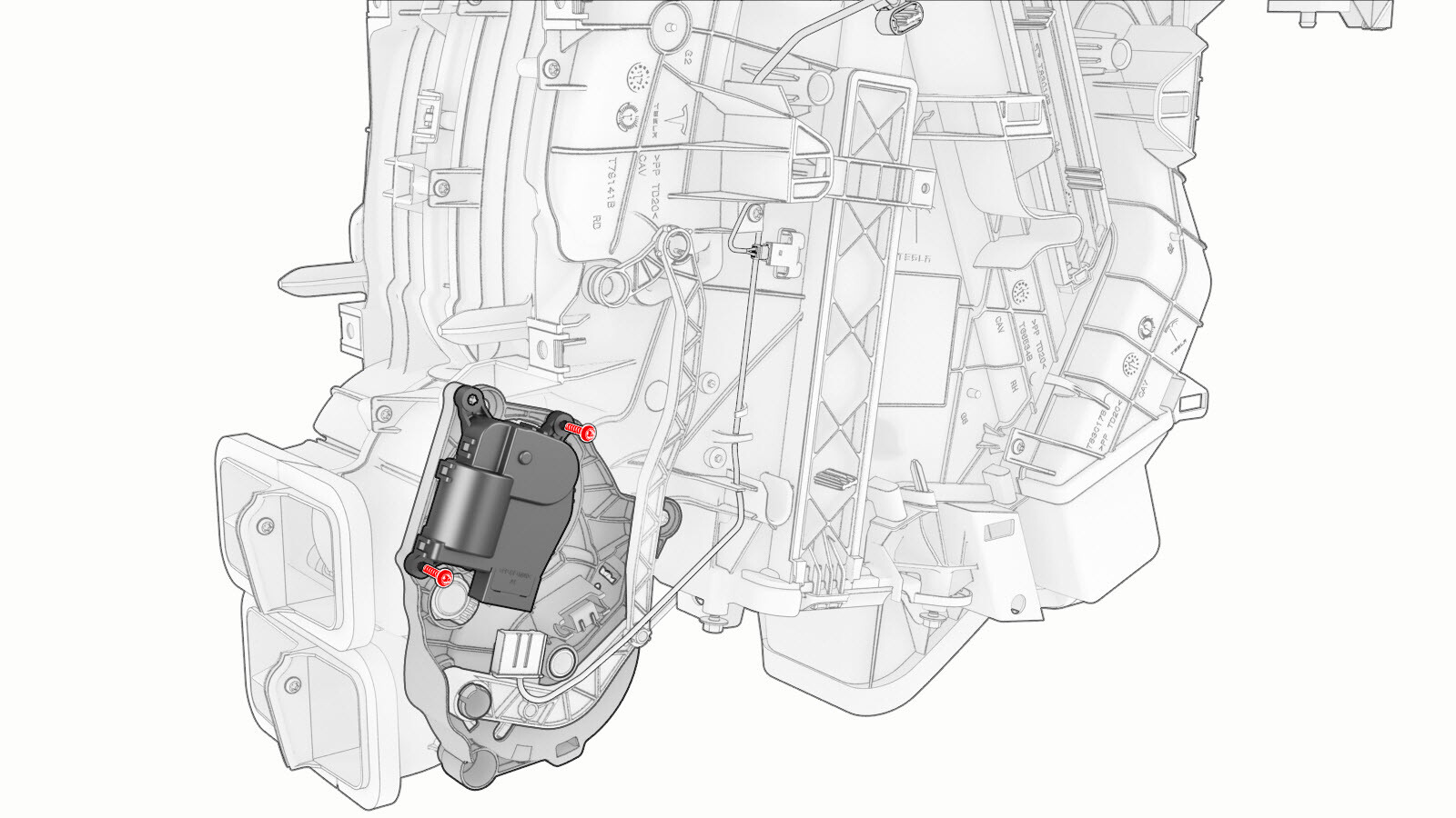 - Position the lower mode actuator on the HVAC assembly, align the guide, and then push the lower mode actuator towards the left to install.