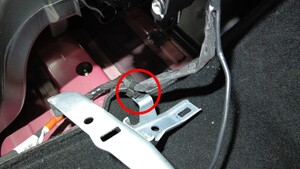 NoteA mini ratchet bit can be inserted behind the harness to reach the forward fastener.