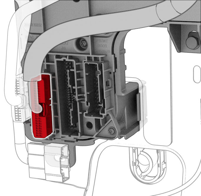 - Connect the J10 dash electrical connector to the LH body controller module, and then secure the connector lock.