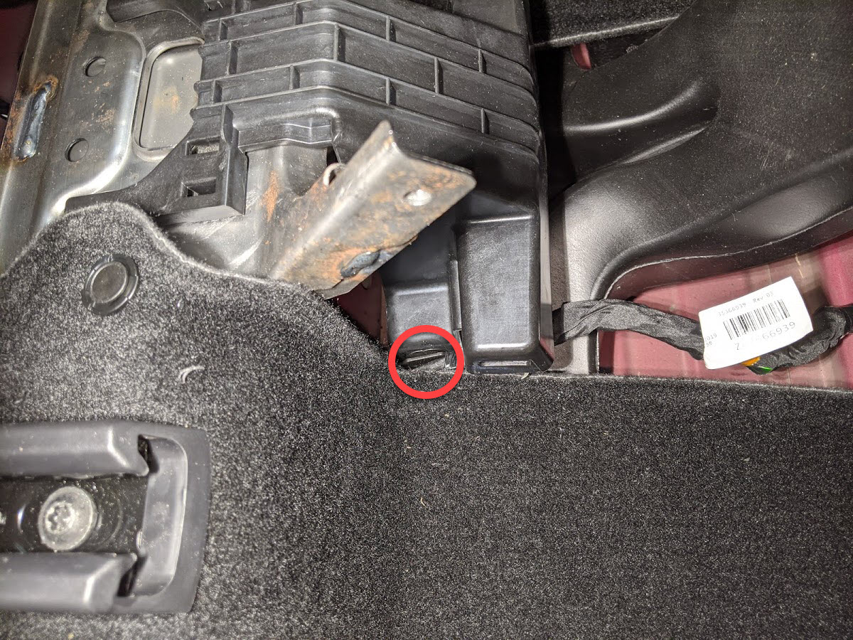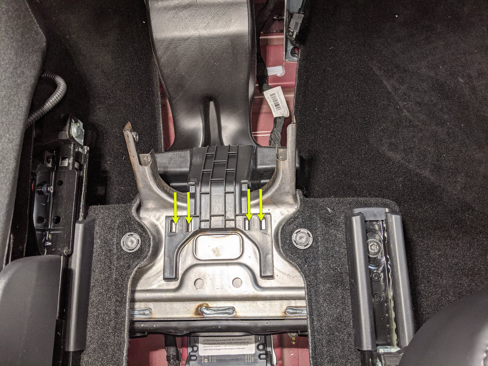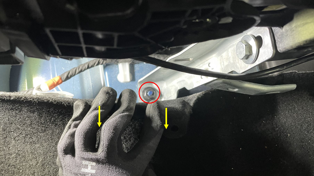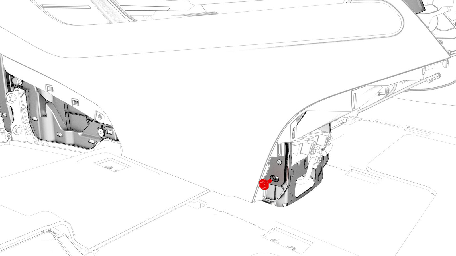 - Remove the clip that attaches the carpet to the RH cross car beam bracket.