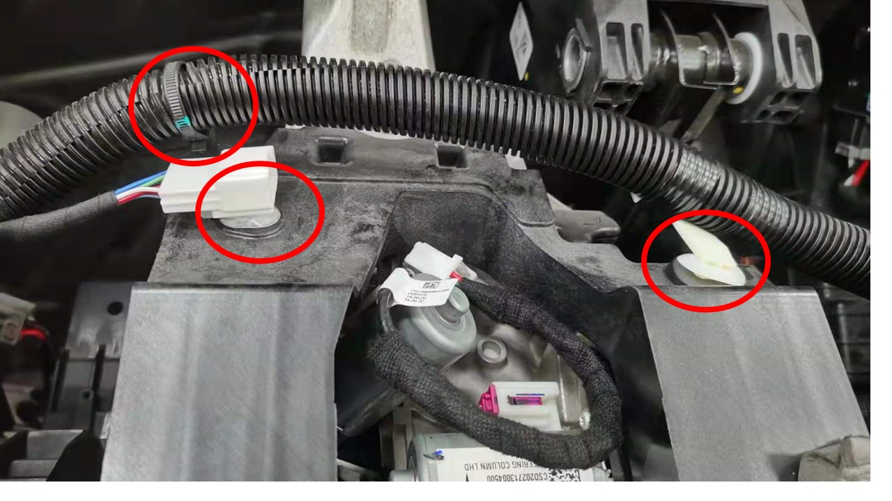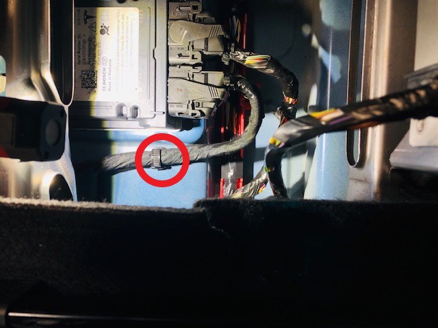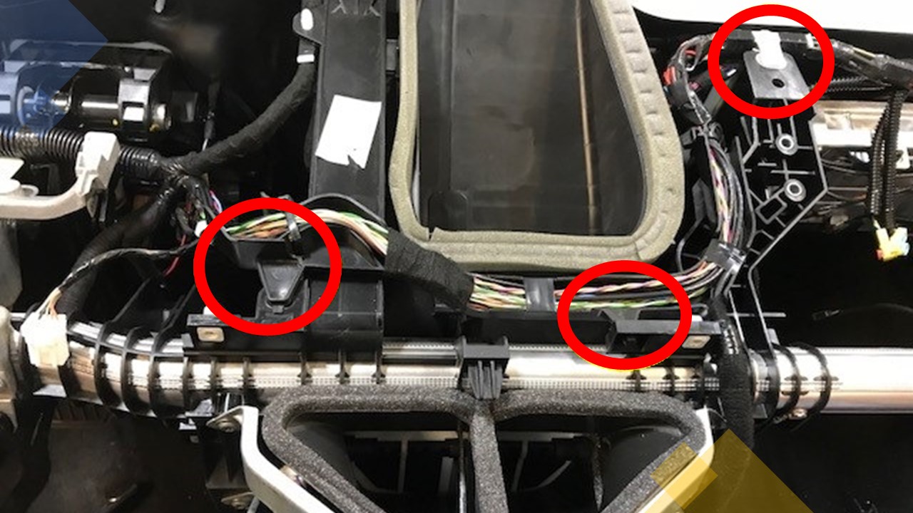 Secure the clips (x2) that attach the harness to the HVAC box.