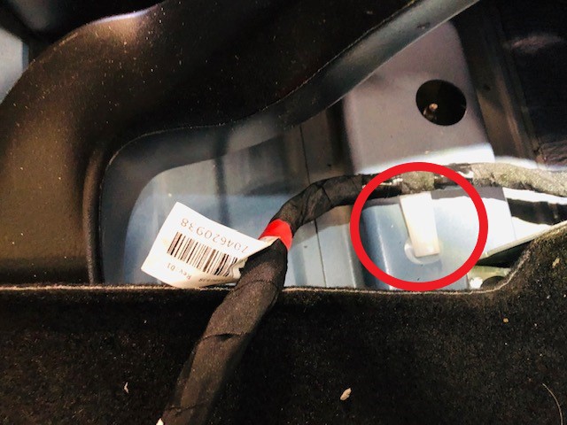 - Fold the RH front carpet back into position, and then install the clip that attaches the RH front carpet to the body at the RH A-pillar.
