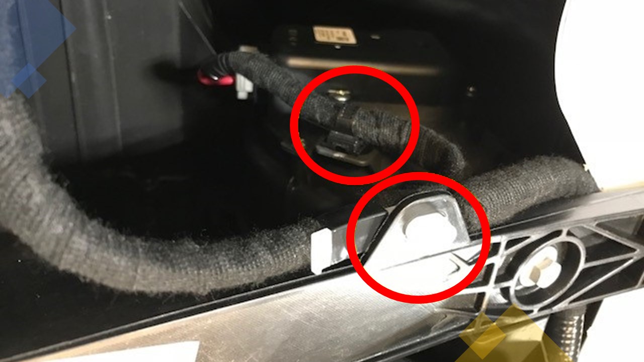 NoteThere is an additional hold down clip towards the top of the HVAC box where the center speaker and tweeter are located.