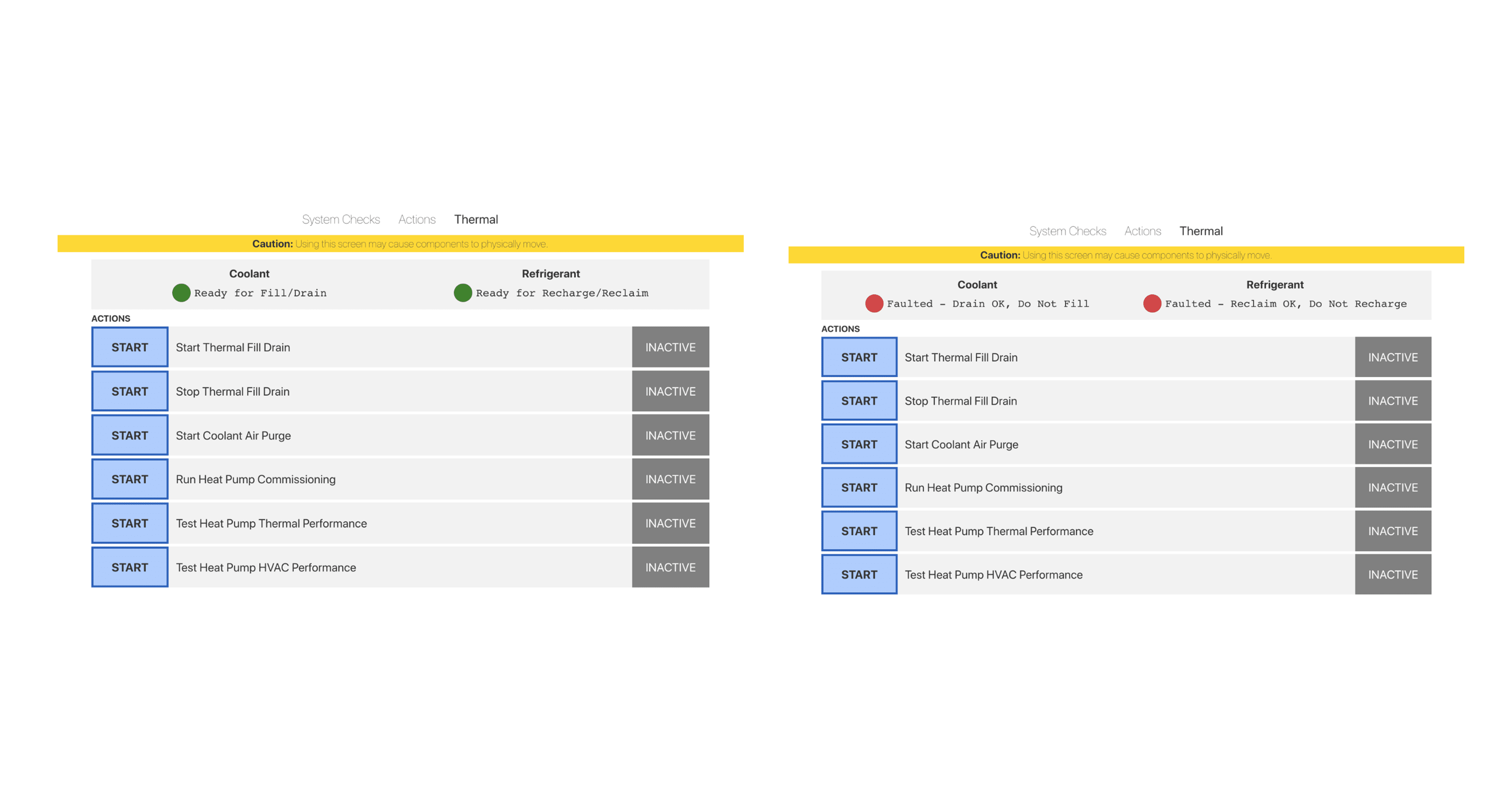 - Thermal ➜ Actions ➜ Coolant Purge Stop or Coolant Purge Start