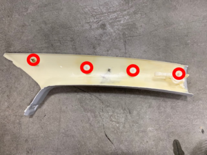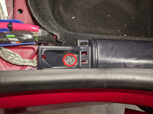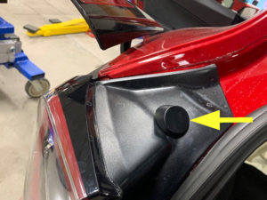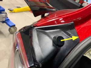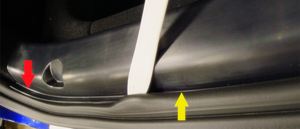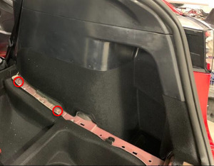 Note1x push clip, Clip goes through B-pillar and rear cabin carpet