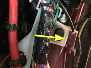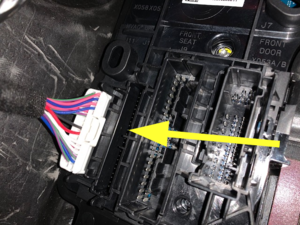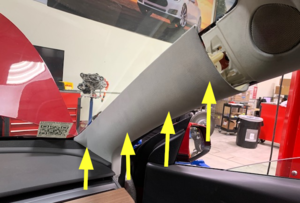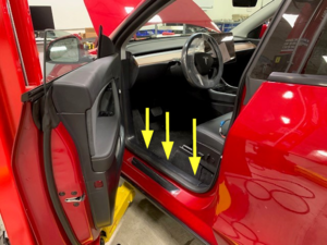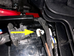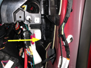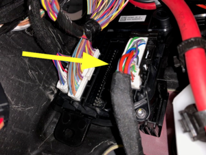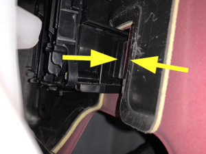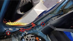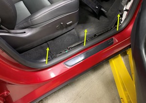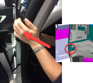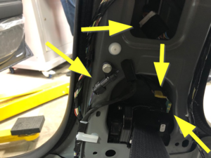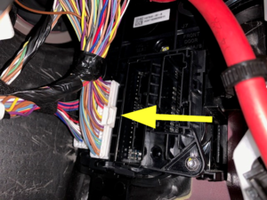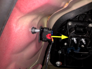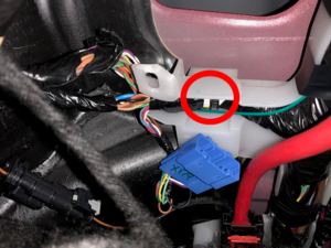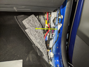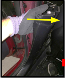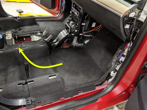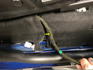 - Pull RH front cabin carpet away from A-pillar to access RH front seat connector