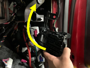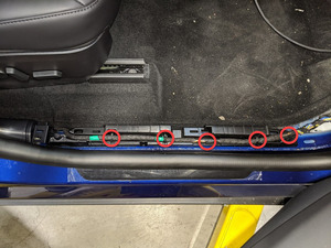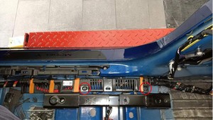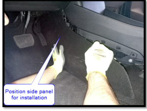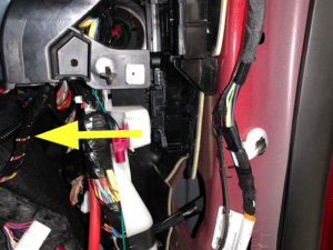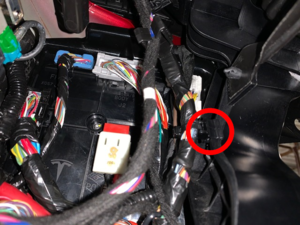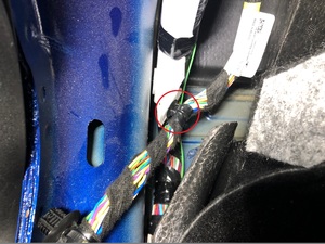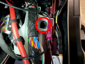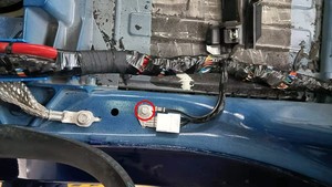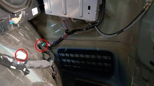 - Pull LH front cabin carpet away from A-pillar to access LH front seat connector