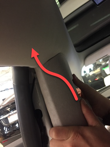 Note1x clip, 1x tab, Release the upper clip then pull mid A-pillar upward to remove
