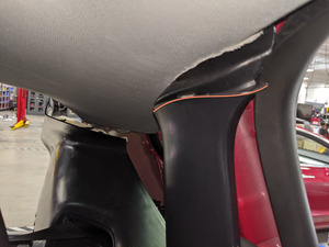 Note6x clips, Guide front upper corner groove out from headliner and place trim aside