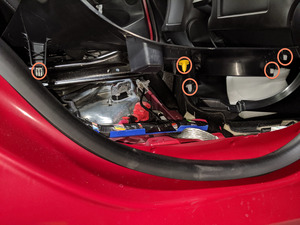 Note14x clips, Hold rear wall of frunk to keep from flexing while engaging front clips