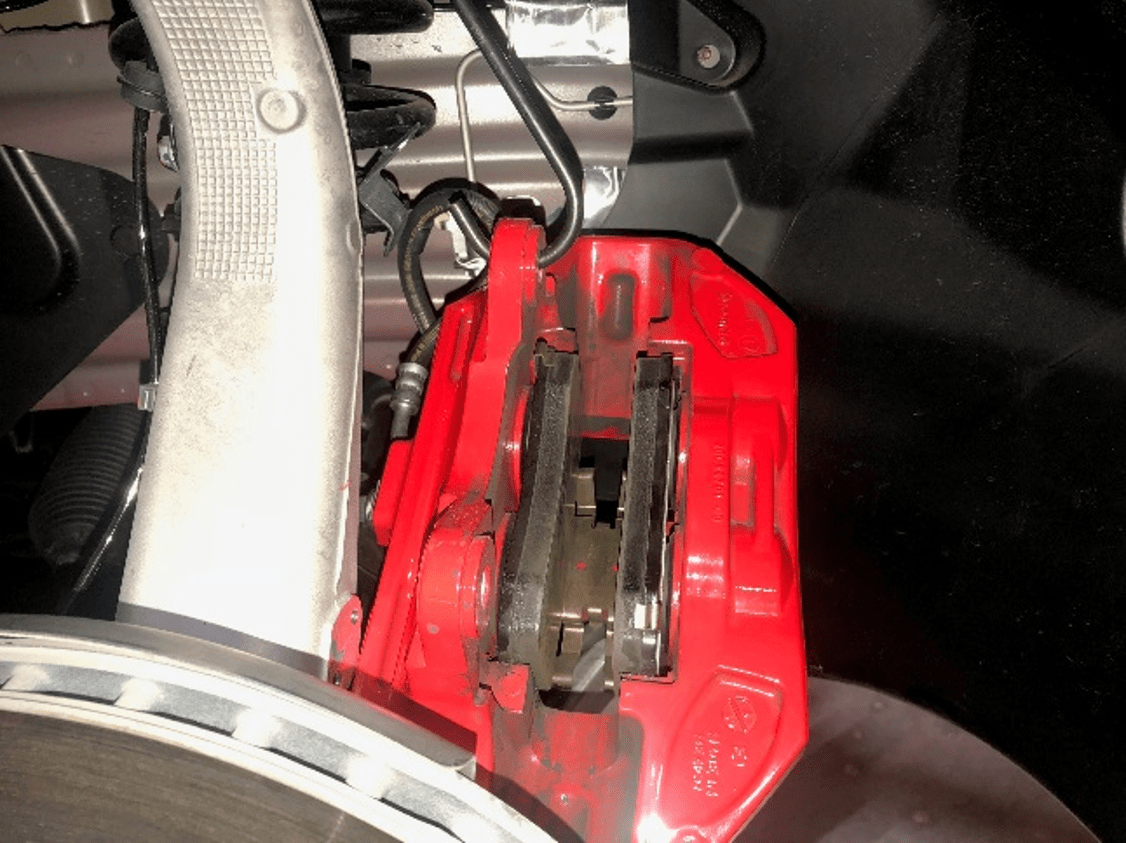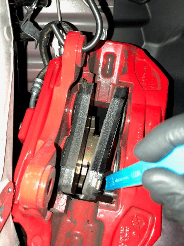 - Use a caliper spreader to expand the brake pads and compress the pistons back into the front LH caliper.